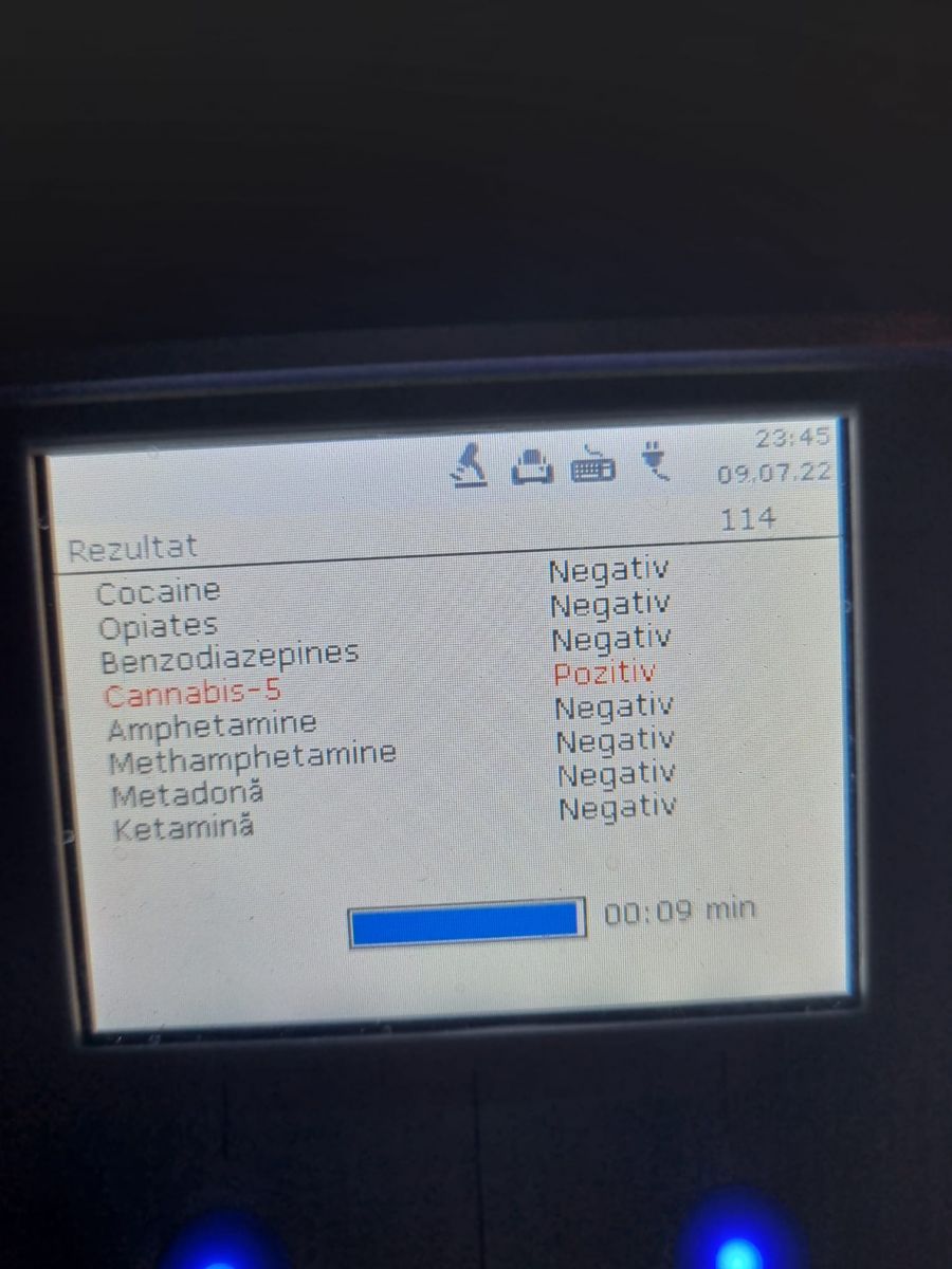 Întrucât tânărul avea un comportament suspect, a fost testat cu aparatul DrugTest, rezultatul fiind pozitiv pentru substanța Canabis.