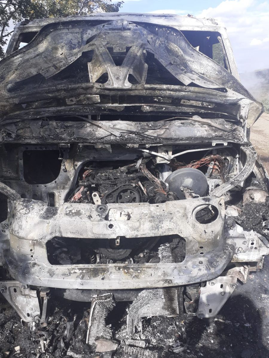 A sunat la 112, dar până la sosirea forțelor de intervenție a încercat să stingă incendiul care i-a cuprins autoutilitara.
