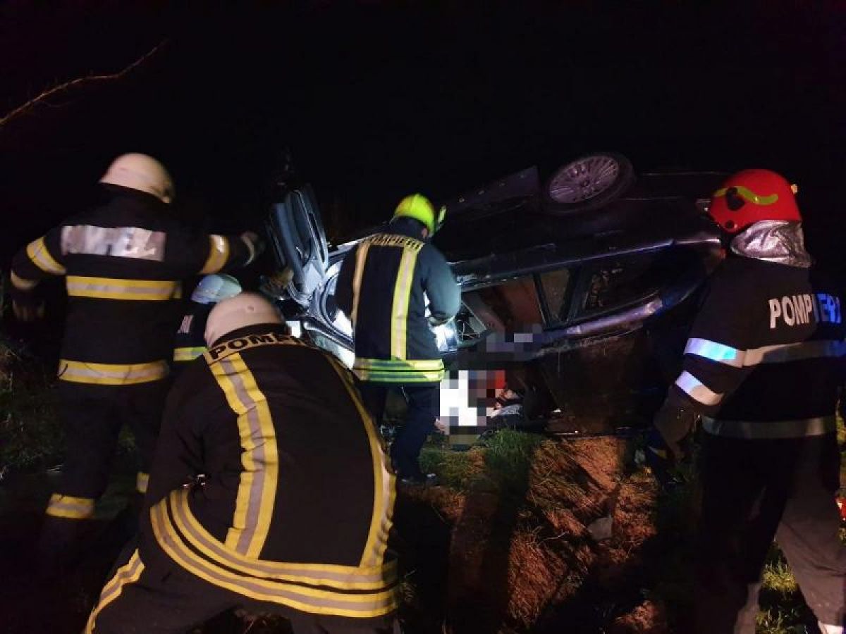 După ce a lovit capul de pod, mașina a fost proiectată peste un gard, la circa 30 de metri de locul impacului, într-un șanț.