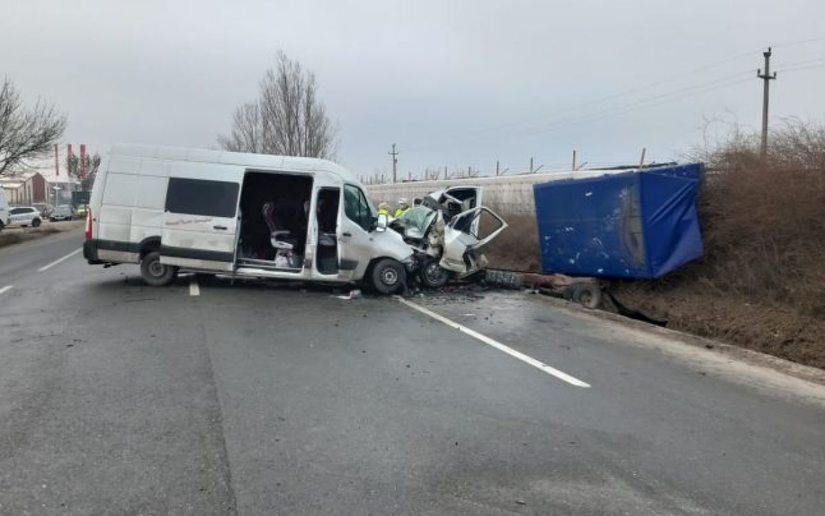 Traficul pe DN2 E85, la ieşire din Râmnicu Sărat spre Vrancea, a fost dirijat, miercuri dimineaţă, din cauza unei coliziuni între o autoutilitară şi un autovehicul tip dubă, cu şapte locuri. În urma impactului deosebit de puternic, unul dintre şoferi a murit, alte trei persoane fiind rănite.
