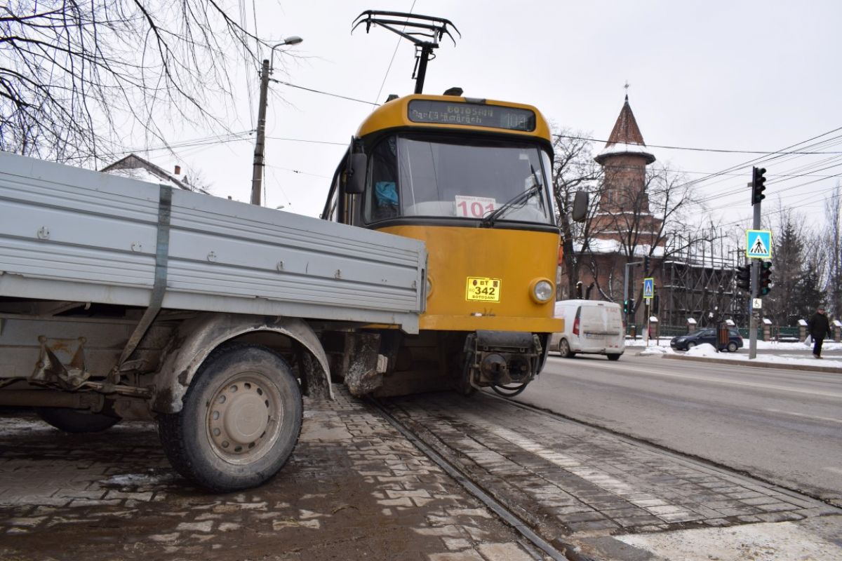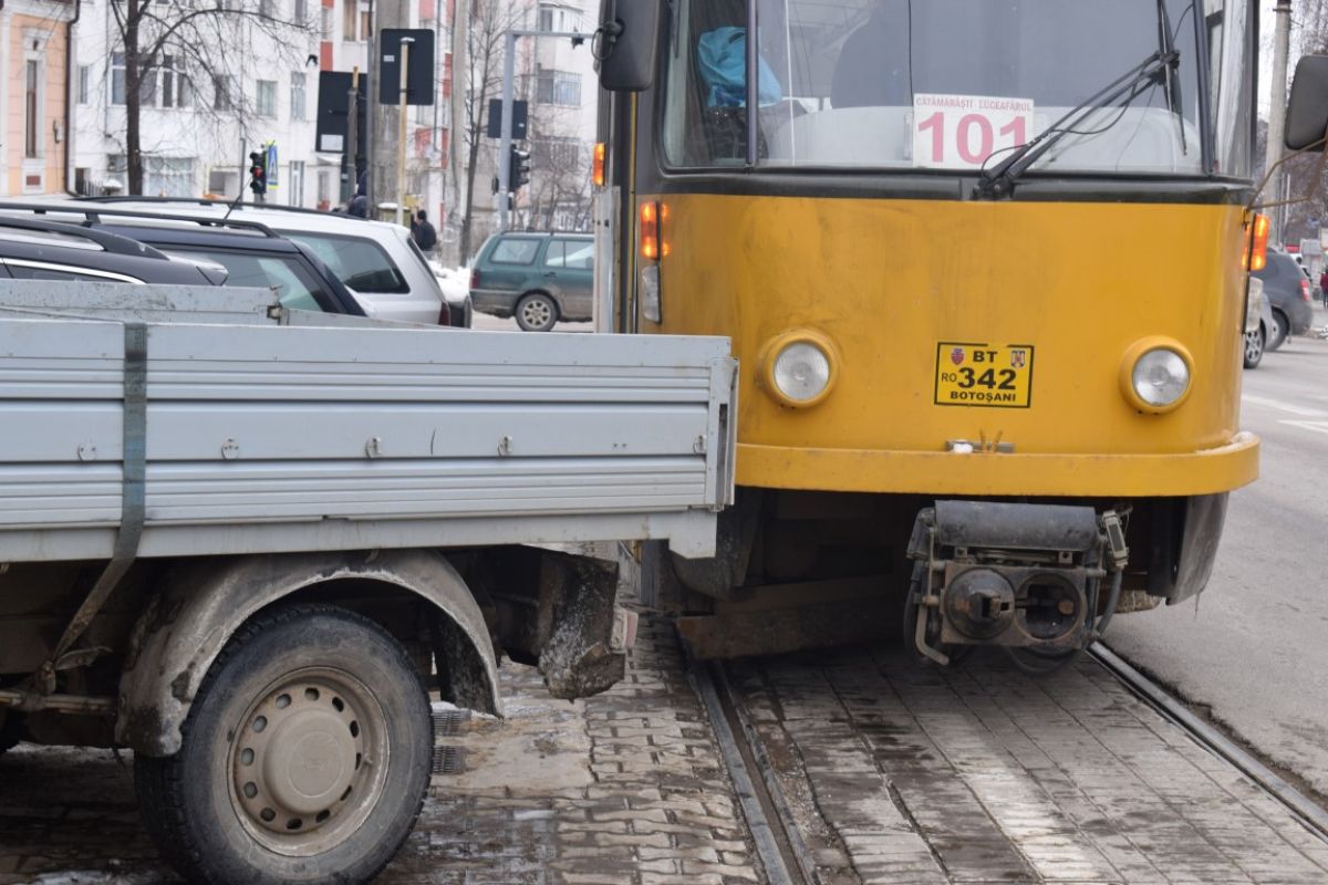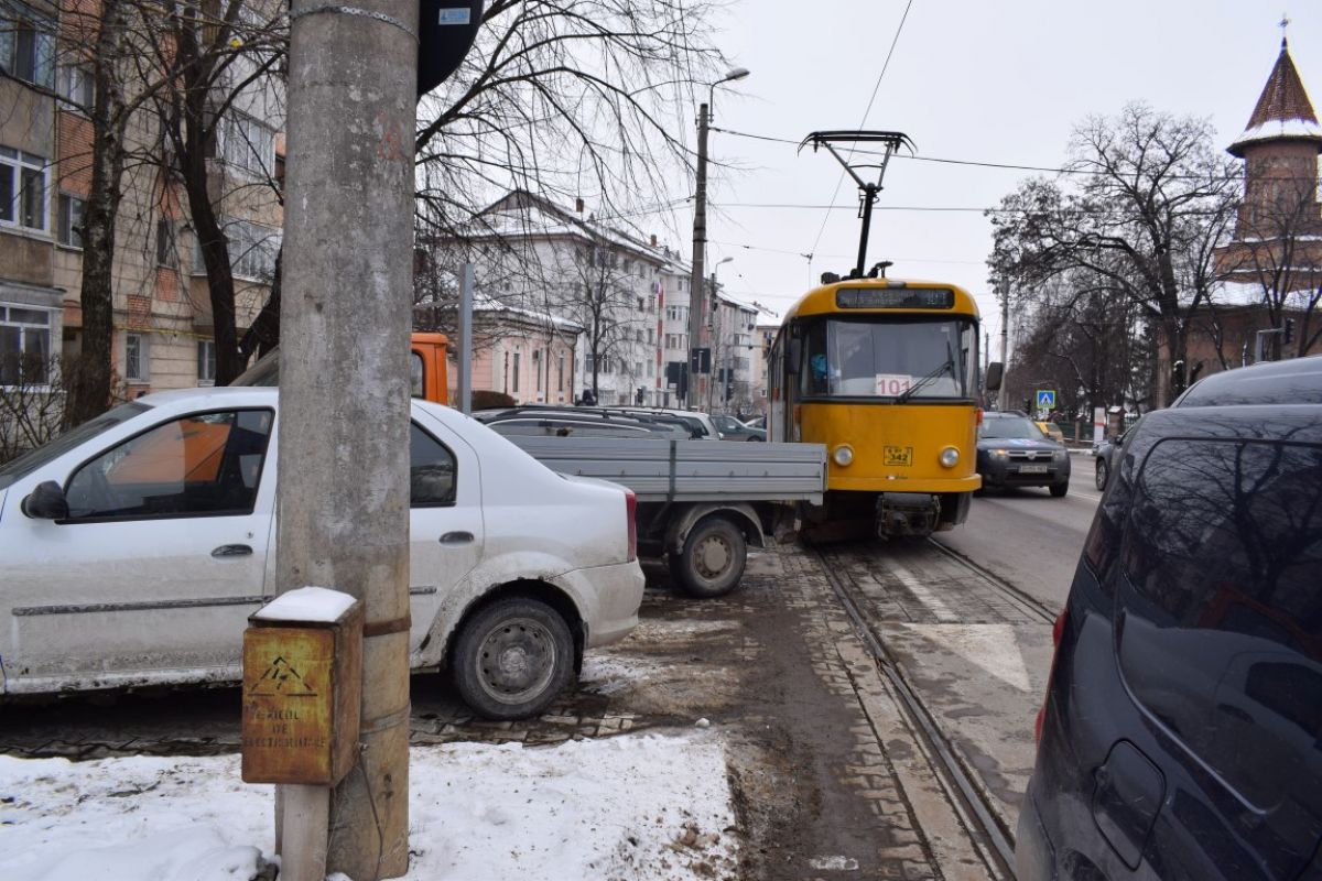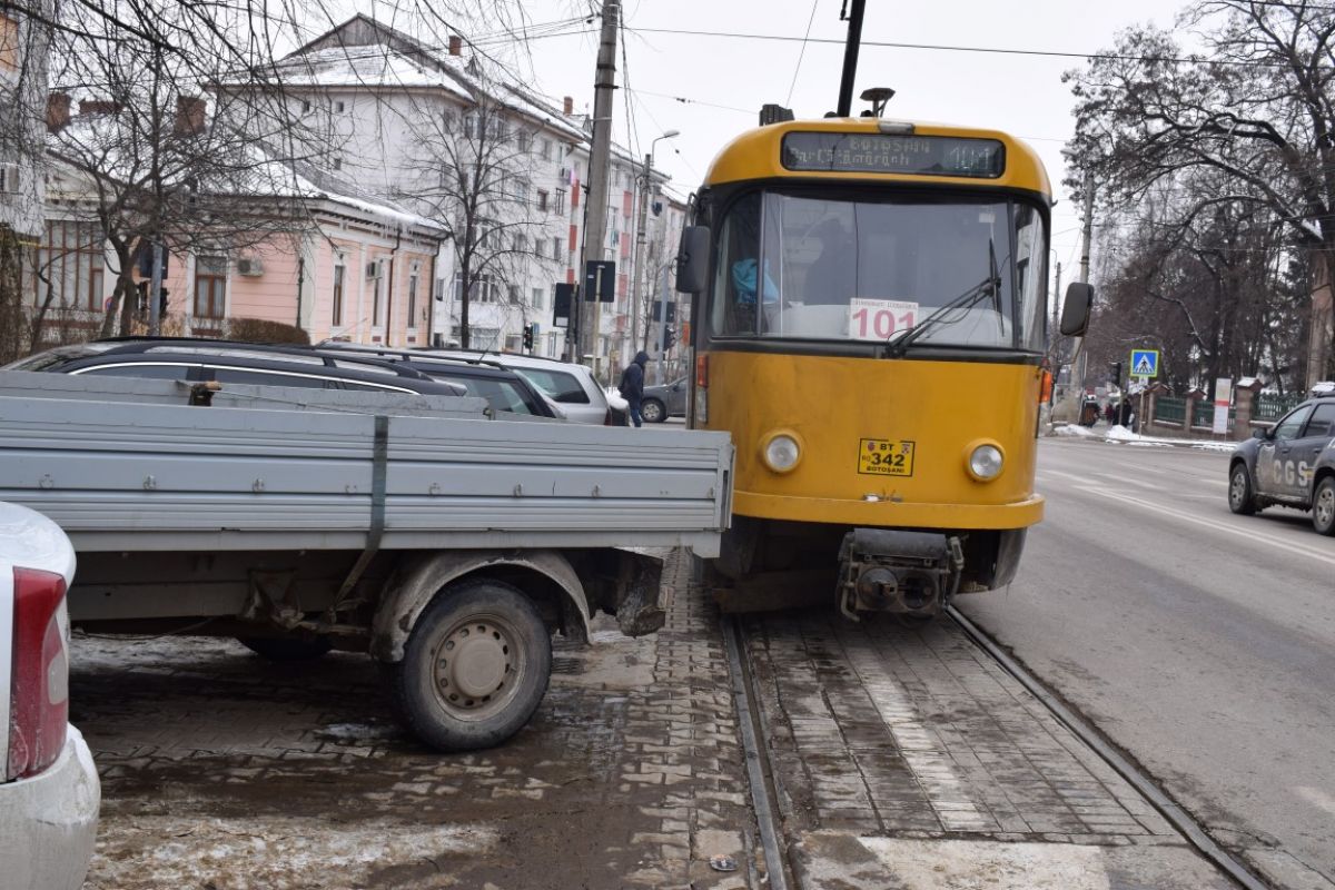 Autovehiculul era parcat pe partea dreaptă a străzii pe sensul de urcare și fiind lung, partea din spate a rămas pe șina de tramvai.