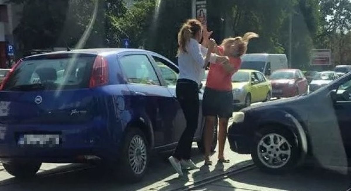 Circ într-o intersectie, încheiat cu un pumn în față dat cu sete unei șoferițe. Totul, după o șicanare în trafic în care au fost implicate două masini.
