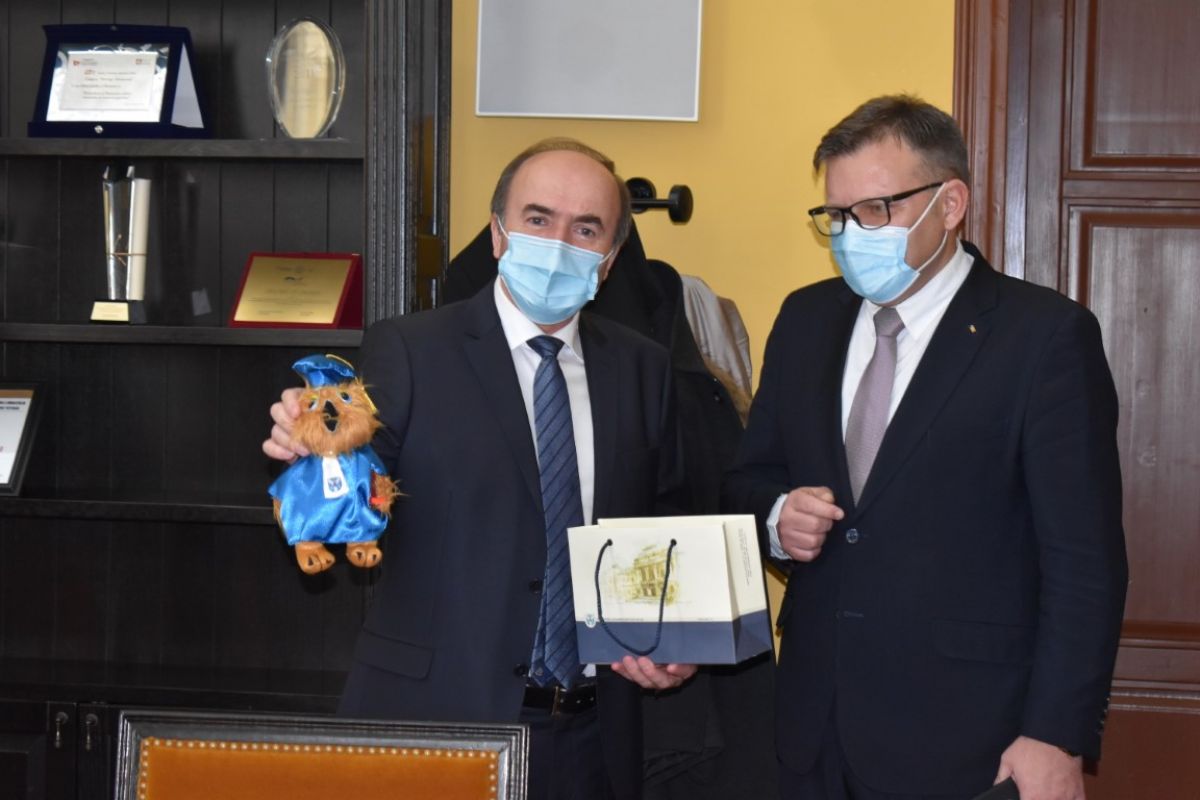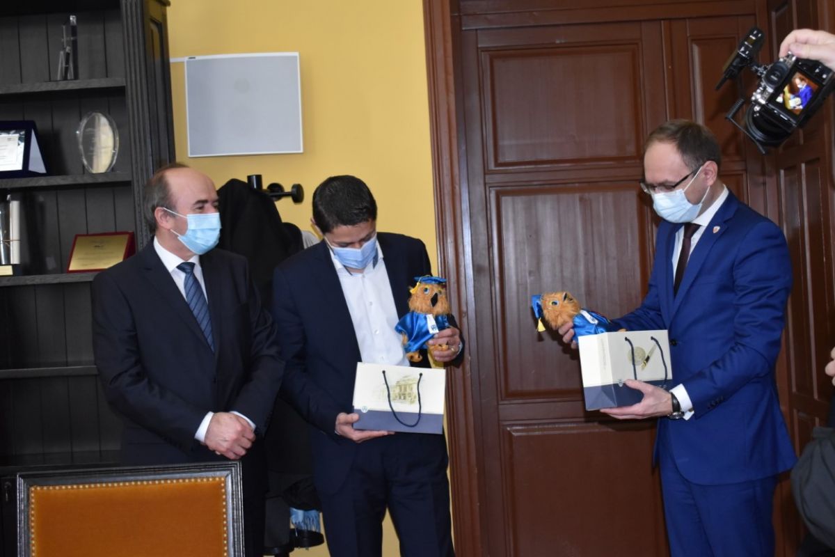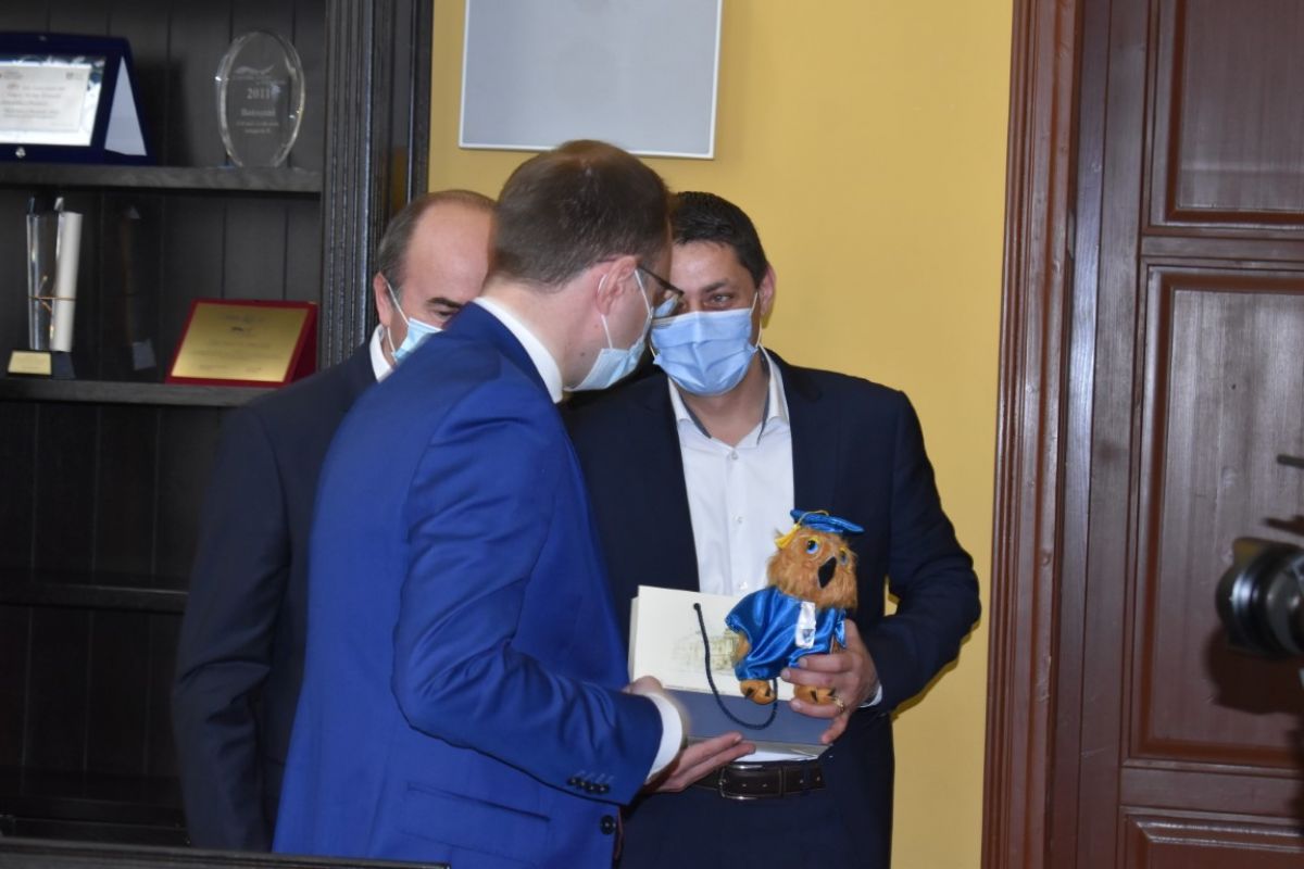 Ulterior discuțiilor s-au oferit cadouri simbolice în ambele sensuri. Tudorel Toader a adus și o mascotă a universității, o bufniță care este simbolul înțelepciunii.