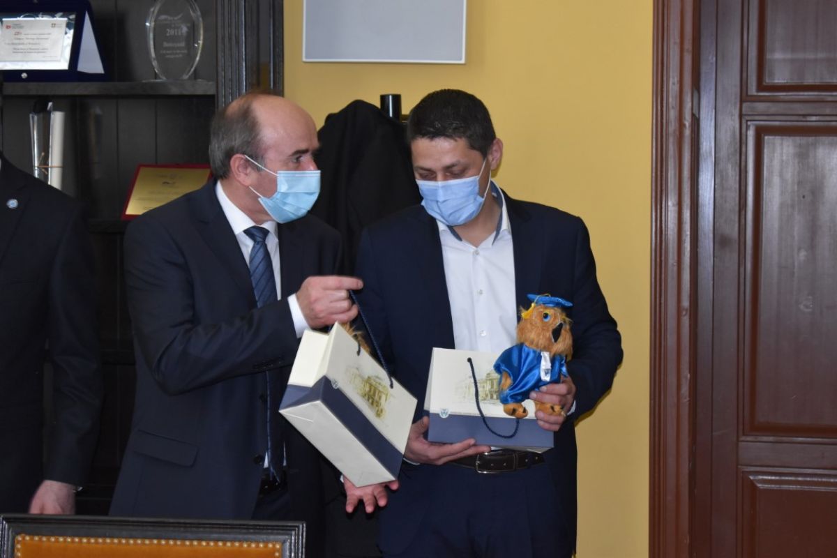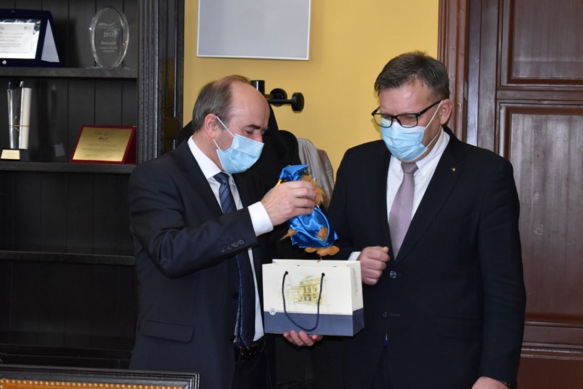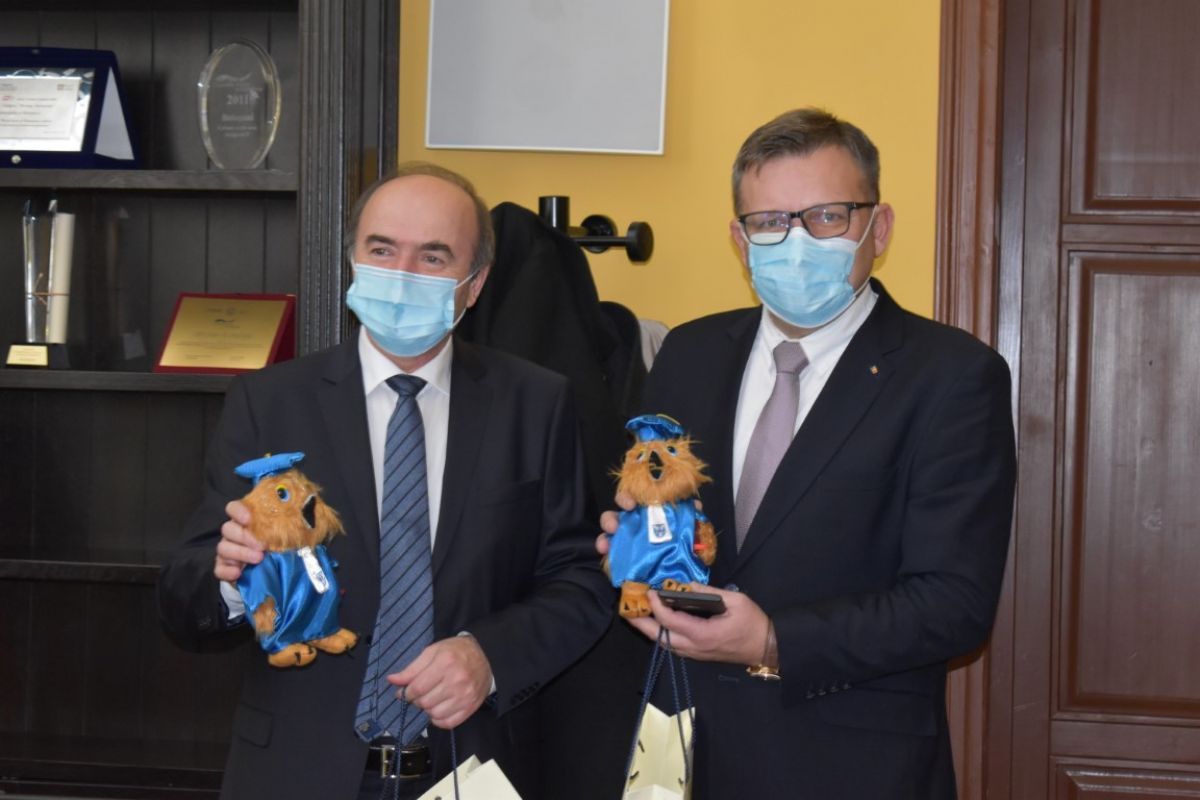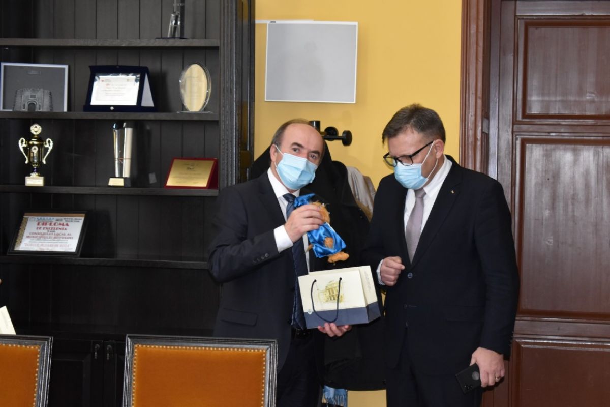 Ulterior discuțiilor s-au oferit cadouri simbolice în ambele sensuri. Tudorel Toader a adus și o mascotă a universității, o bufniță care este simbolul înțelepciunii.