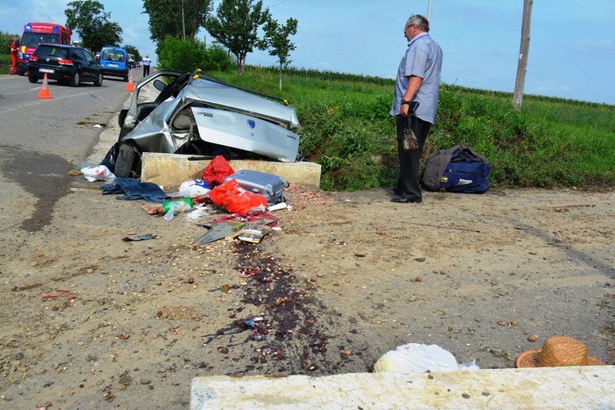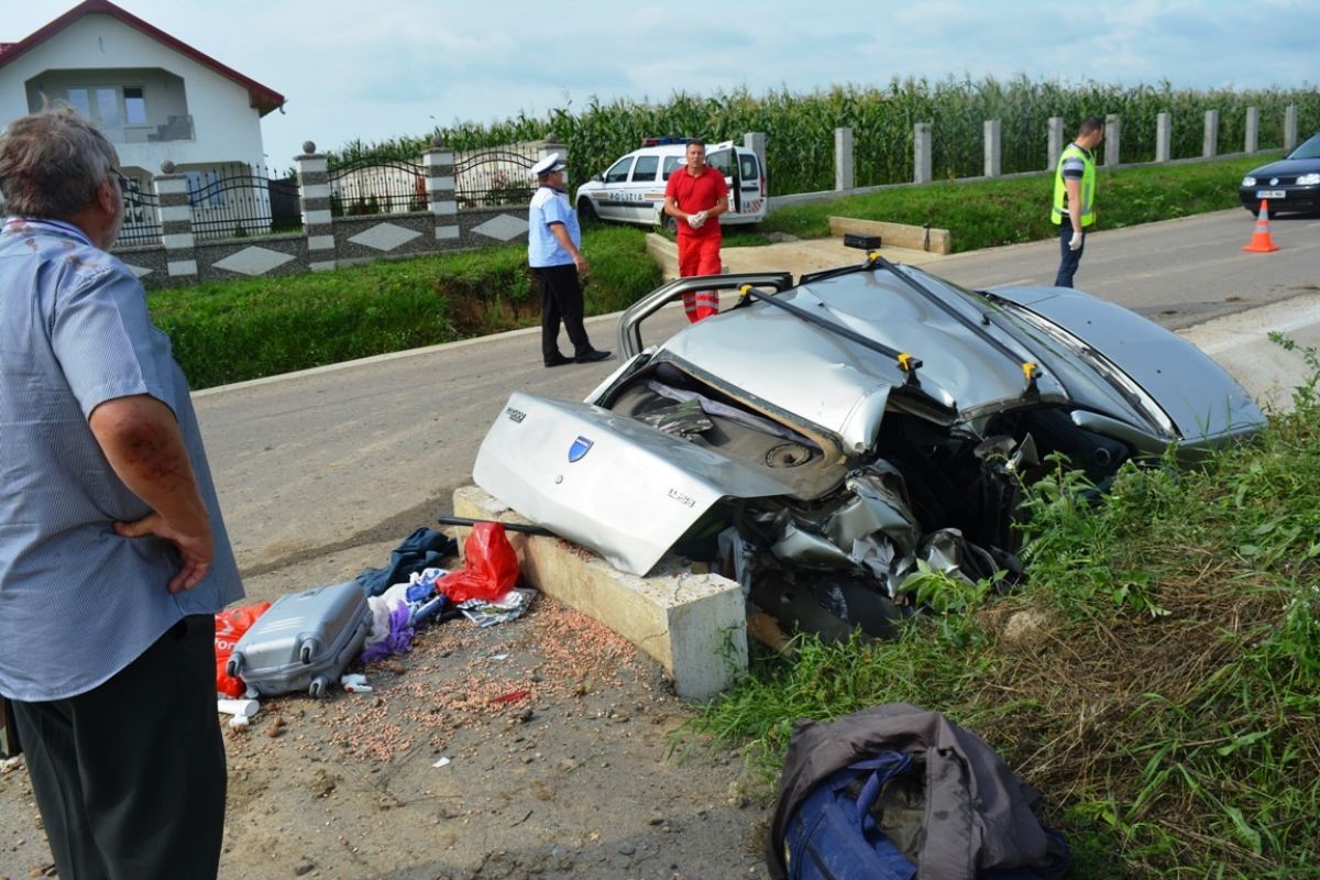 Înainte de a intra în satul menționat, a efectuat o depășire într-o zonă cu linie discontinuă și apoi n-a mai putut stăpâni mașina, care după ce a lovit capul de pod a fost proiectată într-un șanț pe direcția inversă de mers.