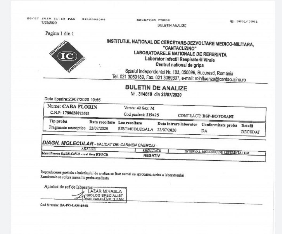Rezultatul a venit în această dimineață, negativ.