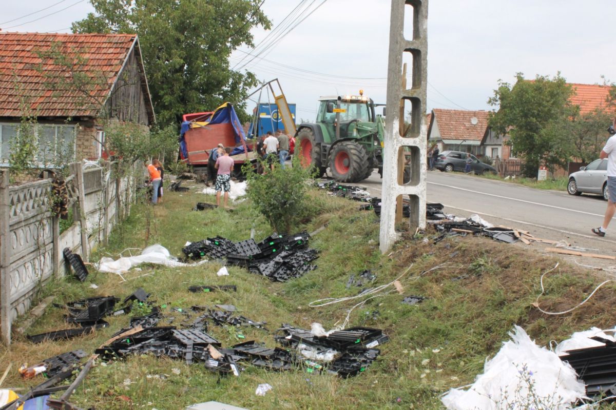 Accidentul s-a produs la ora 1:35, în localitatea Spătaru. Potrivit informațiilor furnizate de IPJ Buzău, un bărbat de 50 de ani, din Suceava, care conducea un ansamblu de vehicule, în direcția Buzău – Urziceni, în dreptul kilometrului 100, a părăsit carosabilul, avariind gardurile și anexele a trei gospodării, precum și două mașini parcate. Impactul a fost atât de puternic, încât anexele, printre care și un magazin, au fost pur și simplu spulberate, totul fiind acum o grămadă de moloz. Nicio persoană nu a fost rănită în accident, însă pagubele sunt uriașe. Șoferul a fost testat alcoolscopic, rezultatul fiind negativ. Cel mai probabil, el a adormit la volan. Polițiștii au deschis o anchetă și continuă cercetările.