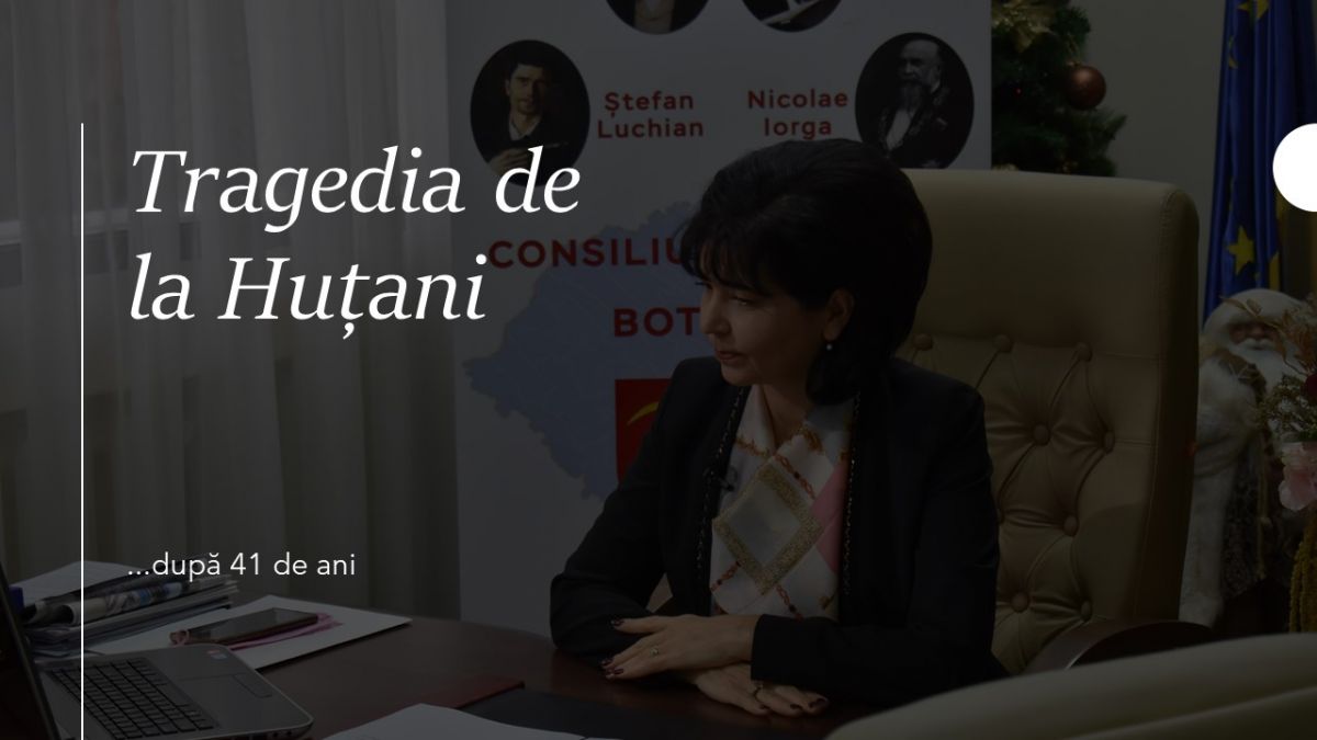 „Cert este că tragedia de la Huțani de acum 41 de ani, care a distrus practic zeci de familii și a împietrit numeroase inimi, nu trebuie uitată de botoșăneni. Iar noi vom avea grijă să aducem, chiar dacă foarte târziu, un mic omagiu memoriei victimelor care și-au pierdut viața în acest accident rutier. Am discutat cu colegii noștri din cadrul Consiliului Județean, cu specialiștii din cadrul Direcției de Dezvoltare, Promovare și bineînțeles cu specialiștii de la Direcția de Achiziții Publice și am hotărât ca în planul de achiziții pentru anul 2022 să cuprindem un concurs de proiecte, în sensul în care, în colaborare cu Primăria comunei Vlădeni, să realizăm în urma acestui concurs de proiecte o troiță sau un monument în memoria victimelor celui mai mare accident rutier din România”.