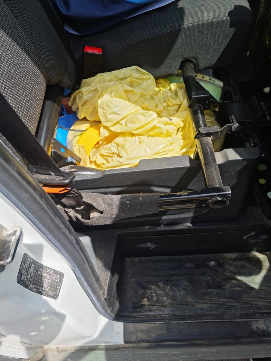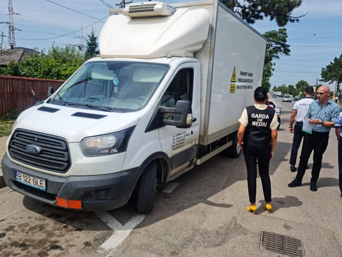 Comisarii au constatat mai multe neconformități pe vehiculul utilizat pentru transportul deşeurilor periculoase, respectiv: