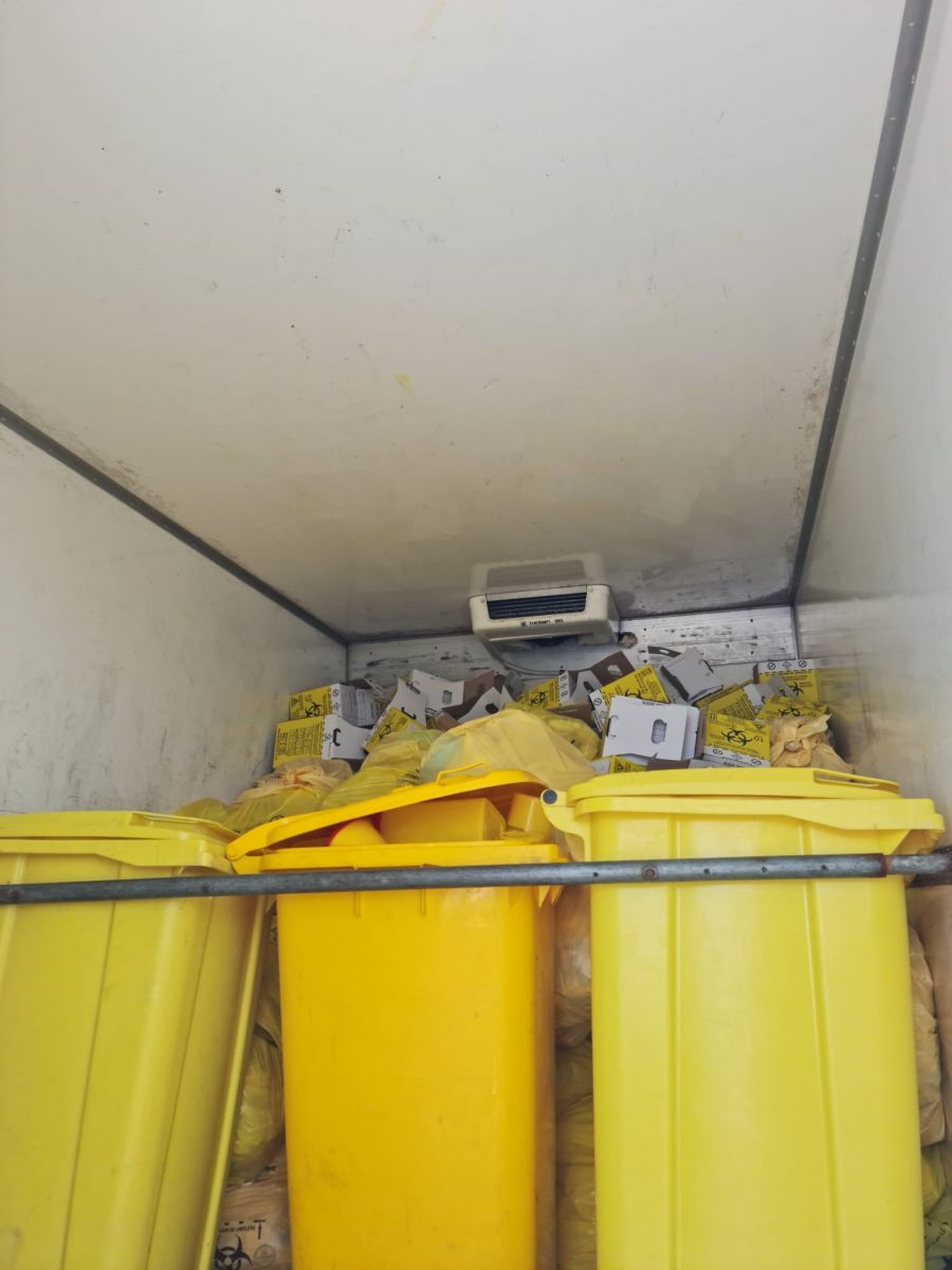 - deşeurilor periculoase rezultate din activitatea medicală, la data controlului se transportau în amestec cu deșeuri nepericuloase, o parte din acestea în afara containerelor din plastic cu capac, tip europubelă, direct pe pardoseală.