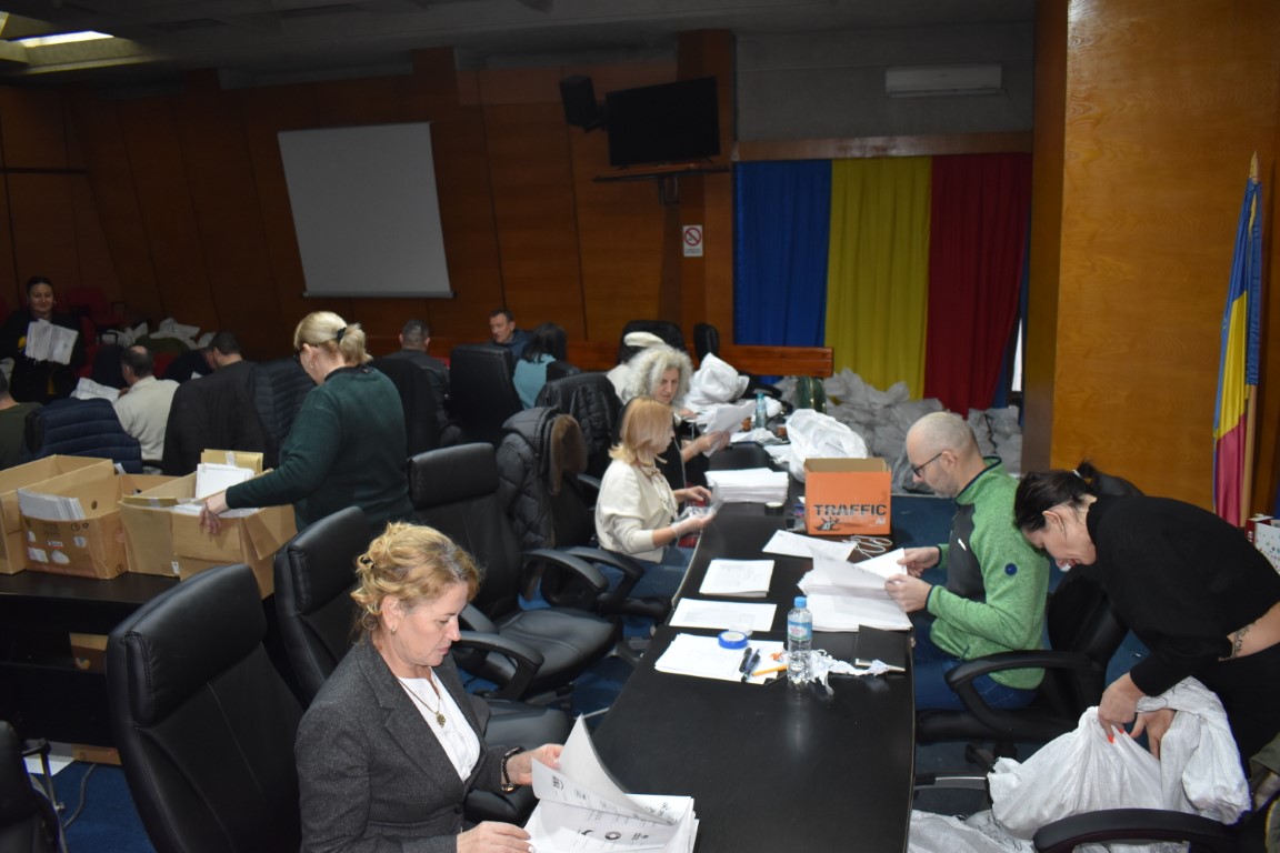 Aproximativ 30 de persoane, membri ai Biroului Electoral Județean, ai Autorității Electorale Permanente, Direcției Județene de Statistică precum și funcționari ai Prefecturii renumără voturile valabil exprimate pe data de 24 noiembrie la alegerile prezidențiale, primul tur.