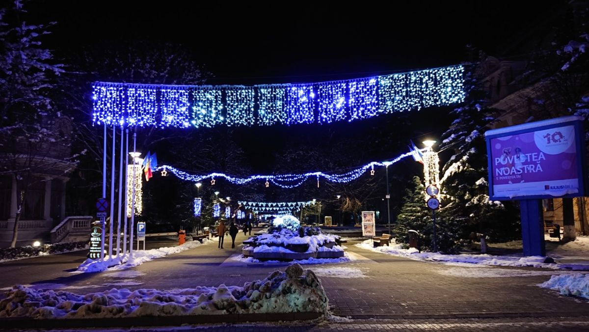 Mergând pe străzile luminate, Calea Națională, Bulevardul Mihai Eminescu, Primăverii, dar și în Parcul Mihai Eminescu, Aleea Unirii, ghirlandele aprinse îți atrag privirea.