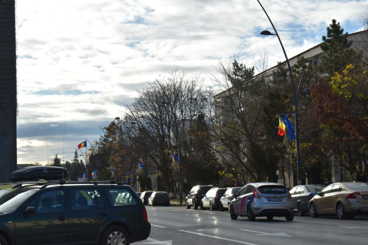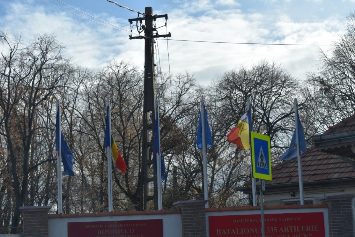 Și orașul în culorile naționale, în unele locuri cu drapele nou-nouțe, în altele, cum ar fi Unitatea Militară 01189, ceva mai decolorate de timp.