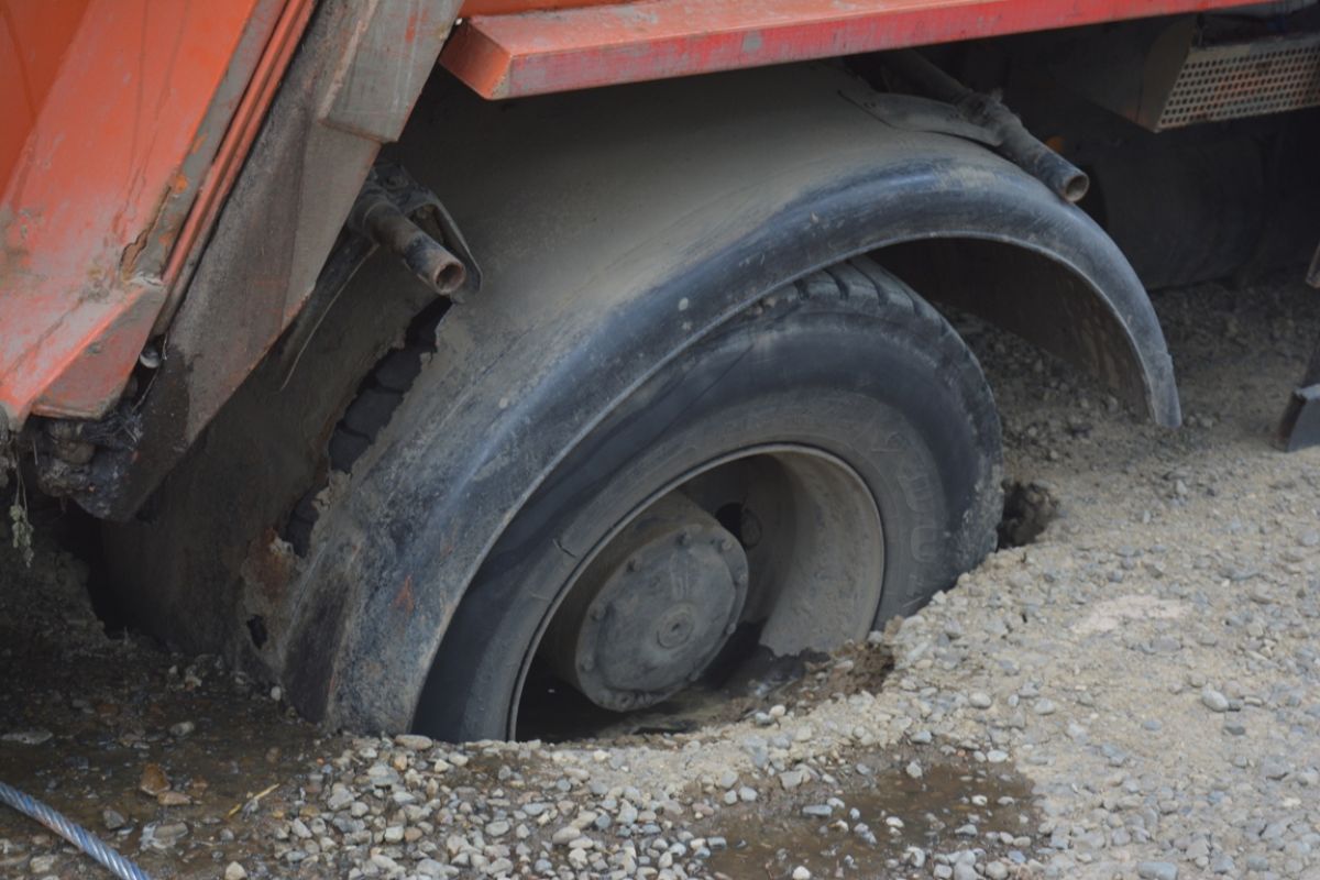 Bătaia de joc a operatorului licenţiat de apă şi canalizare a mai bifat astăzi o etapă. O maşină de 18 tone a intrat într-un drum pe care s-au desfăşurat lucrări la reţea şi n-a mai putut ieşi.