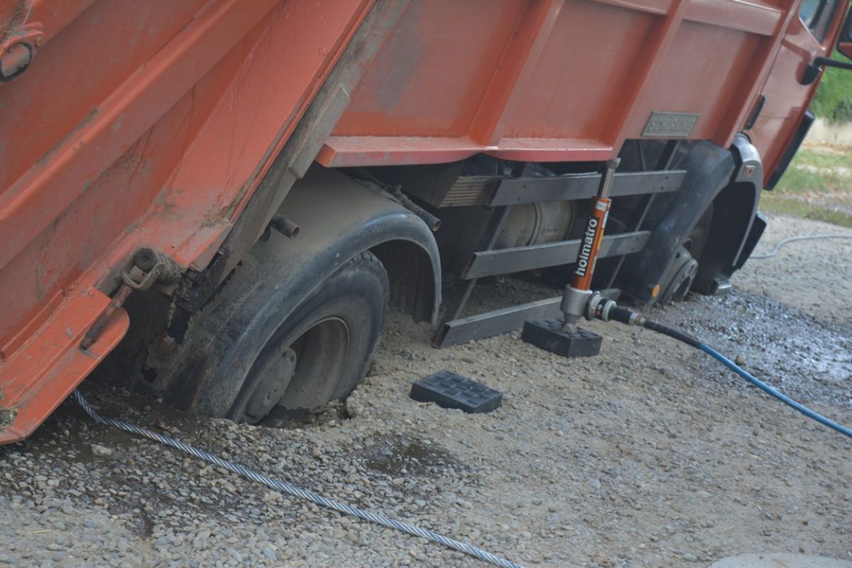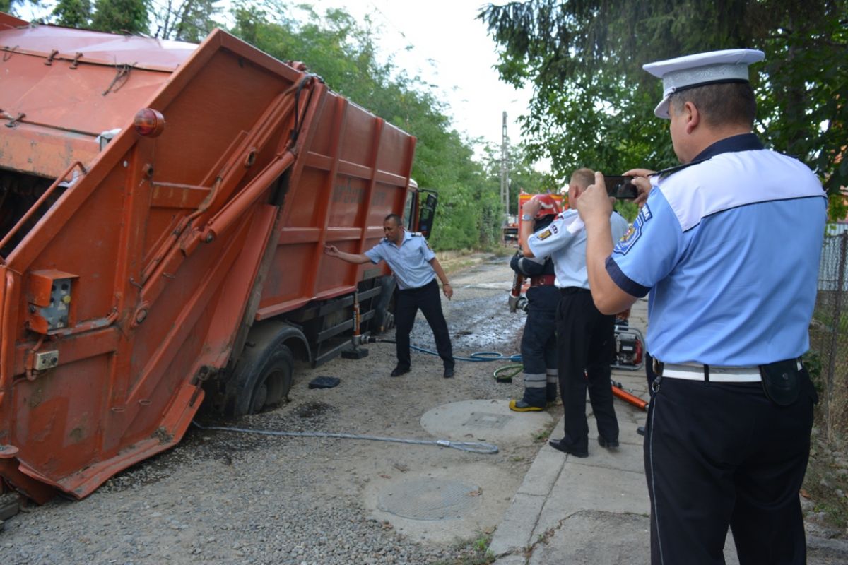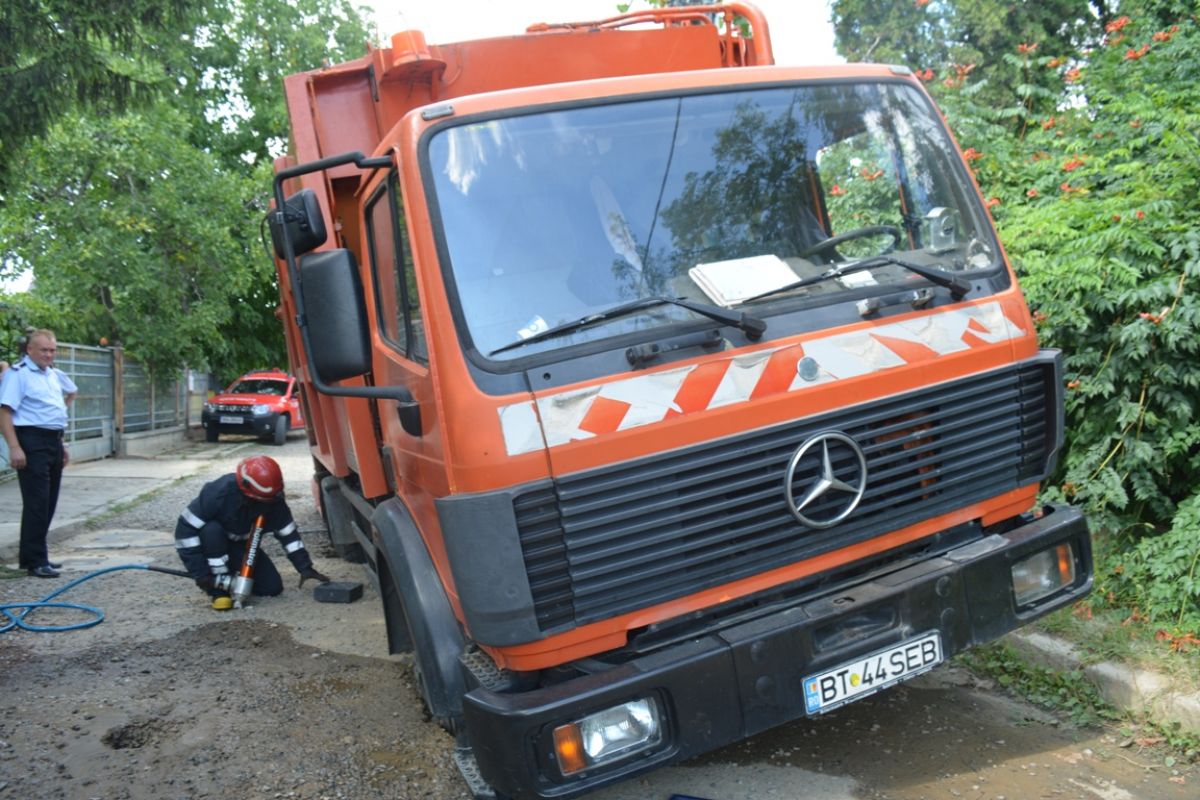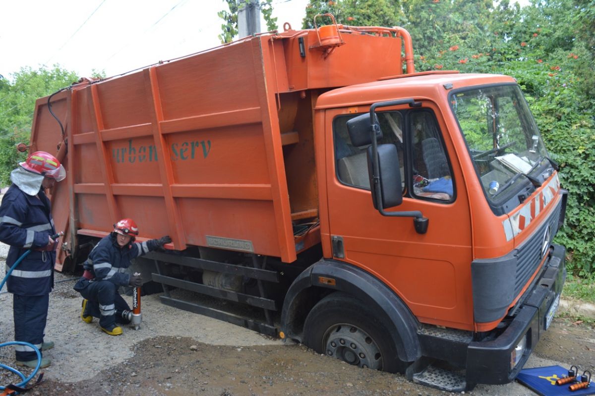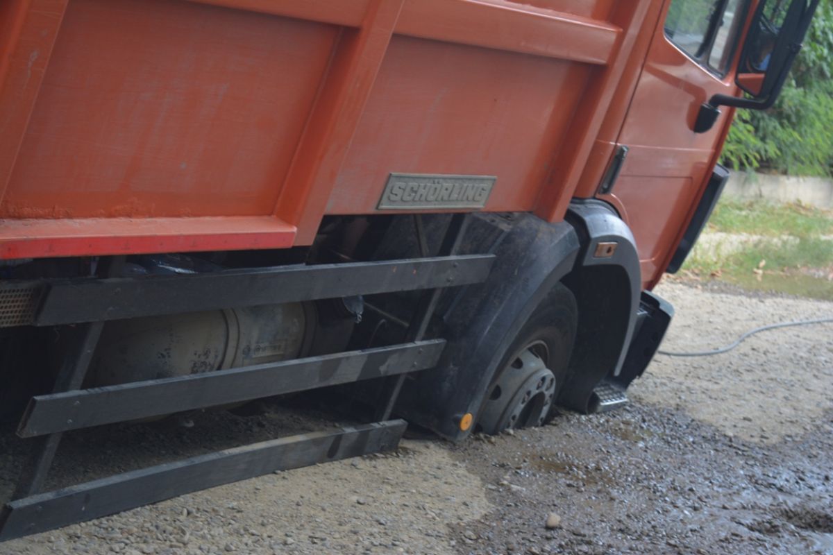 O maşină de la SC Urban Serv SA se deplasa pe aşa-zisa stradă, de fapt un drum pietruit, însă la un moment dat, pur şi simplu, roţile din partea dreaptă i-au intrat în pământ şi nu se mai putea mişca.