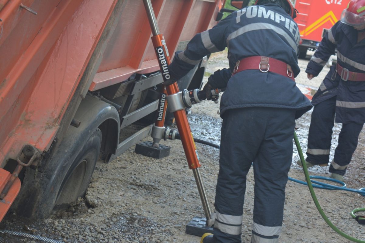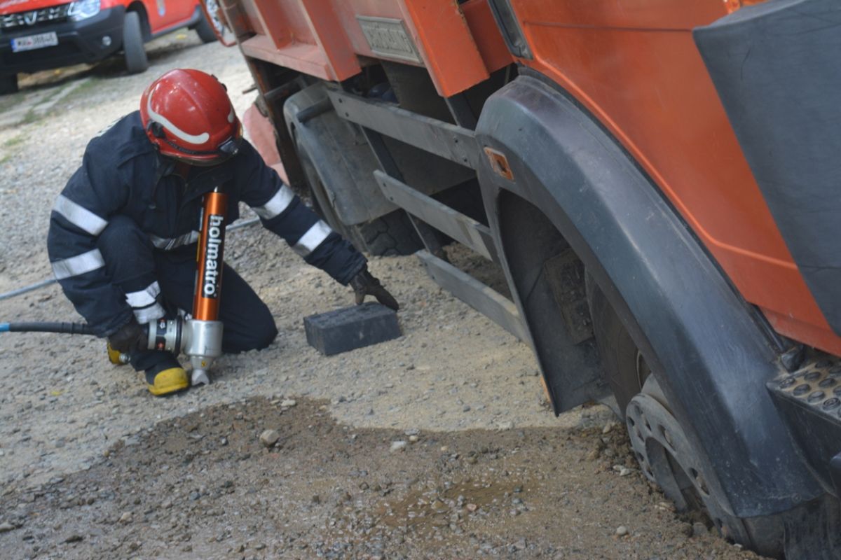 La faţa locului s-a deplasat un echipaj de la Inspectoratul pentru Situaţii de Urgenţă, care însă a eşuat în mai multe încercări de a scoate maşina.