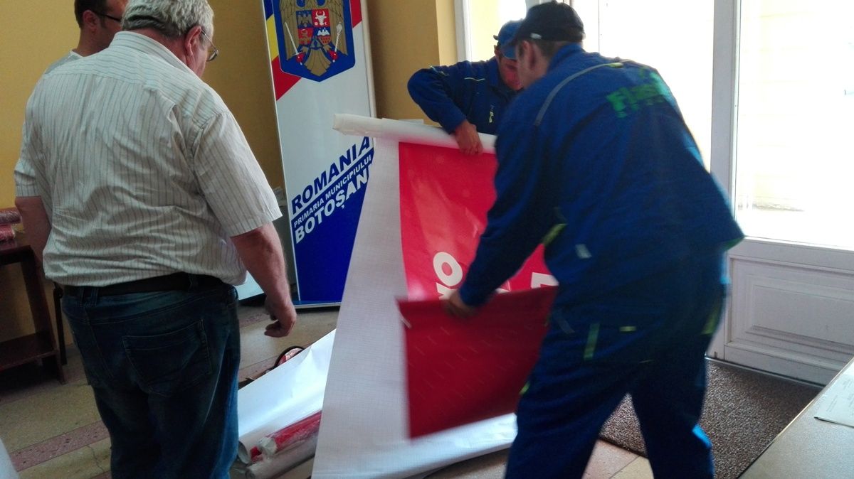 Un oficial al Federaţiei Române de Fotbal a adus la Primăria Botoşani şase bannere pentru a fi montate în locurile cele mai circulate din Botoşani. Acestora li s-au adăugat şi câteva sute de afişe. Responsabil a fost acelaşi Romulus Eram, consilier la cabinetul primarului, care a plecat cu o echipă în oraş pentru a coordona operaţiunea.