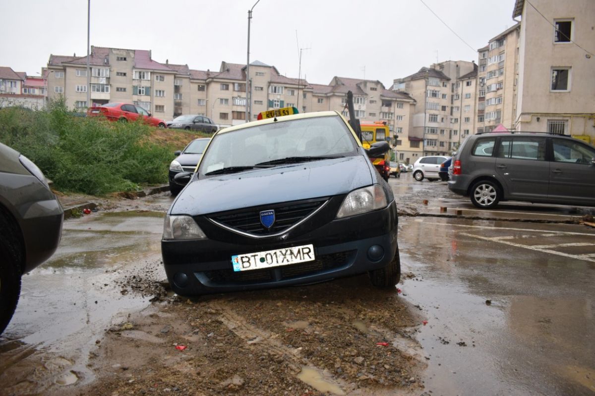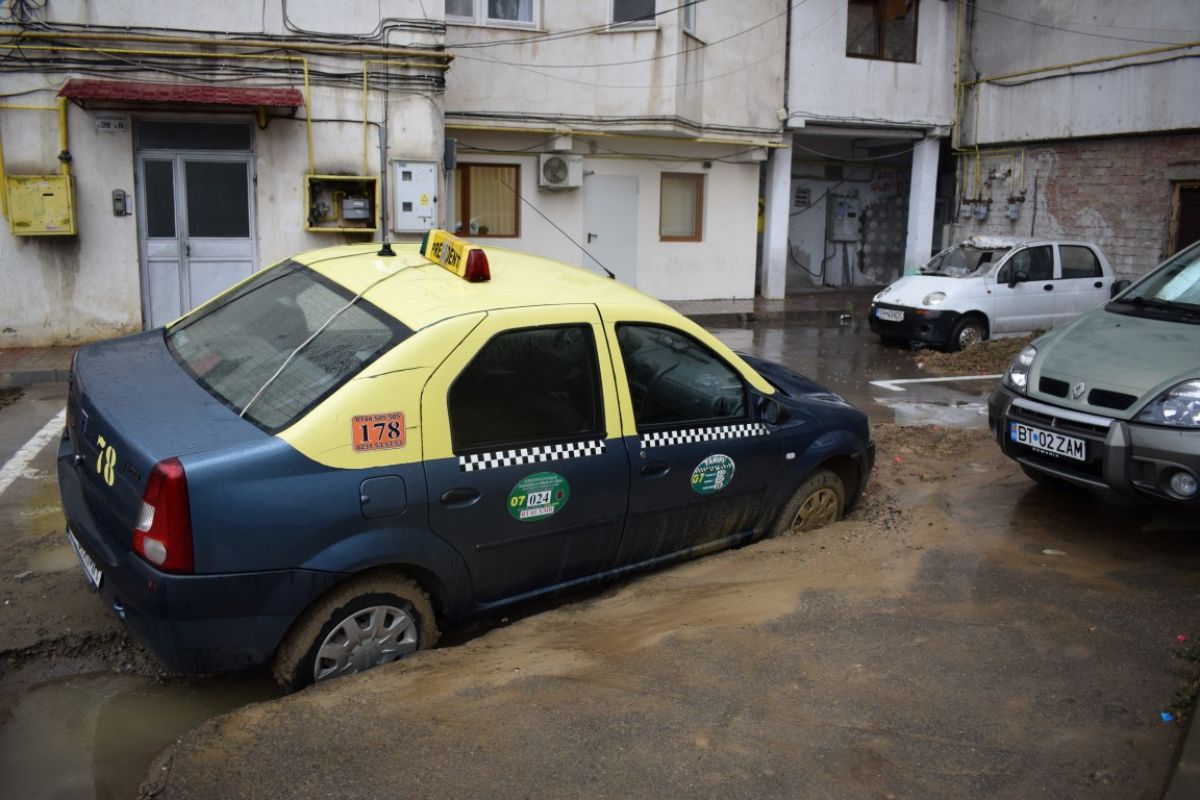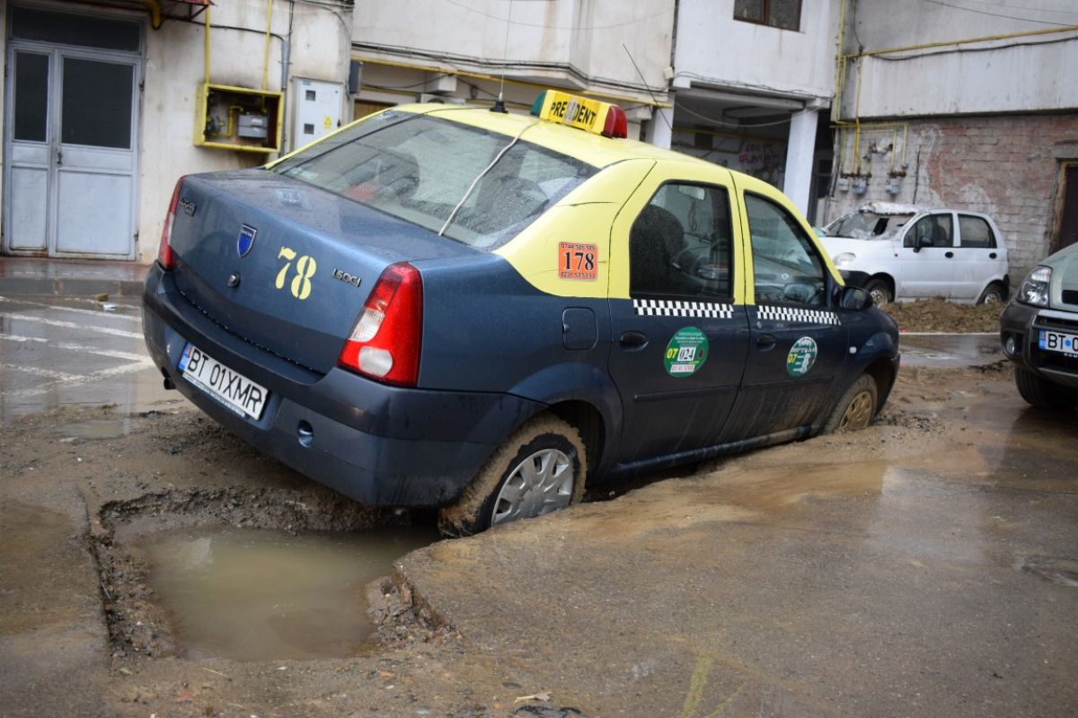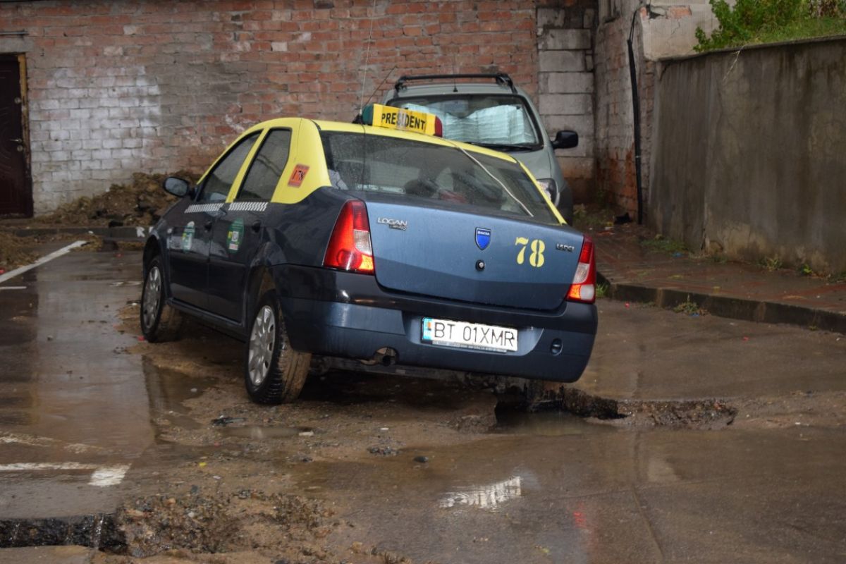 Un botoșănean s-a trezit să-și ducă la școală copilul, însă nu a mai ajuns unde s-a pornit. La o manevră de întoarcere, mașina care circulă în regim de taxi a rămas cu partea laterală într-un șanț care fusese acoperit în bătaie de joc doar cu pământ. Odată cu ploaia care a început să cadă de ieri dimineață, pământul s-a prăbușit.