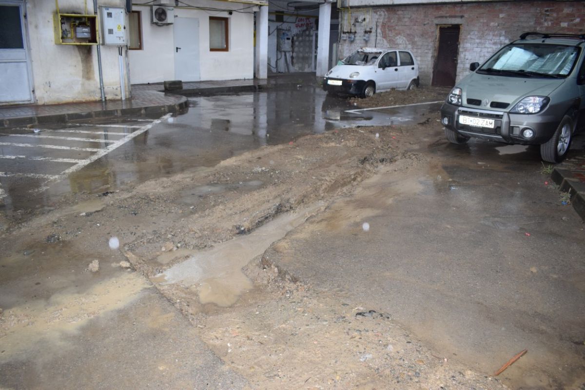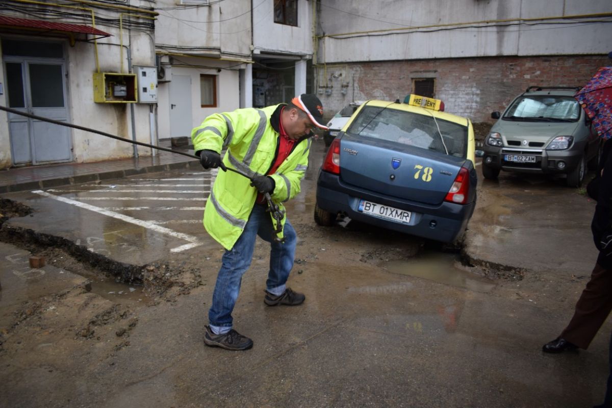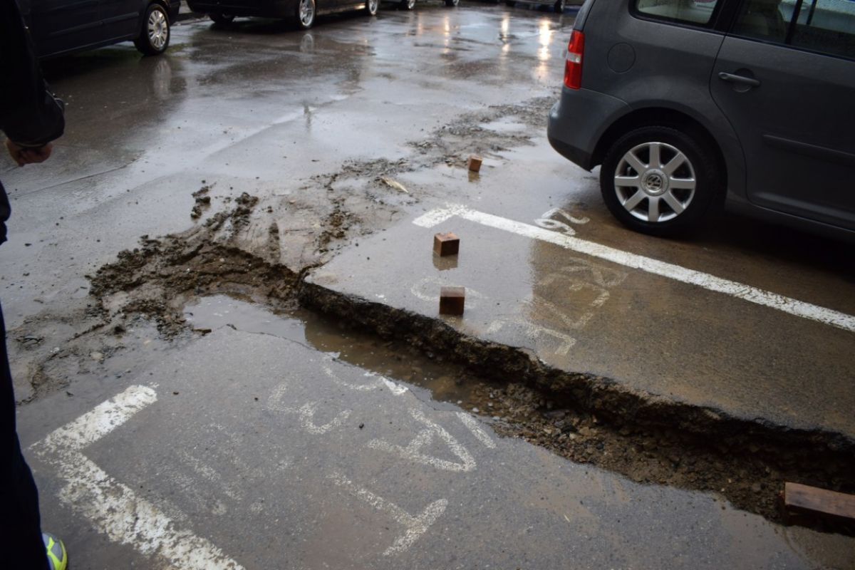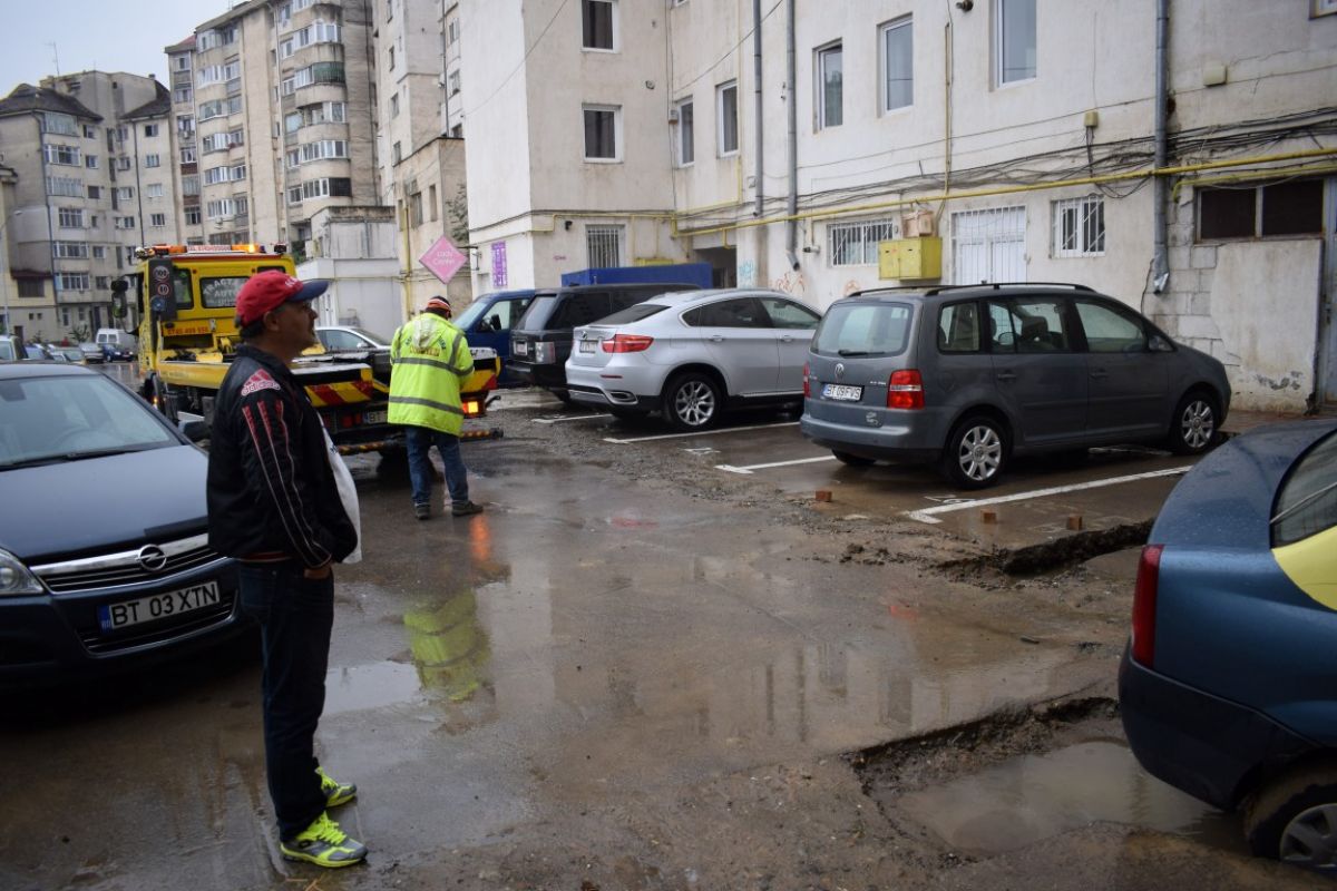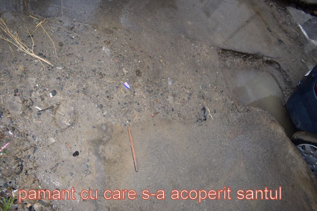 ”Dimineață la 7.30 când am vrut să plec cu fata la școală, am dat să o întorc aici, acesta este locul meu de parcare, fleoșc roata din față s-a dus. Acesta este locul meu de parcare concesionat de la Primărie, care este plătit. Când am vrut să o scot am rămas acolo. El a fost acoperit doar cu pământ și când a venit ploaia s-a dus”