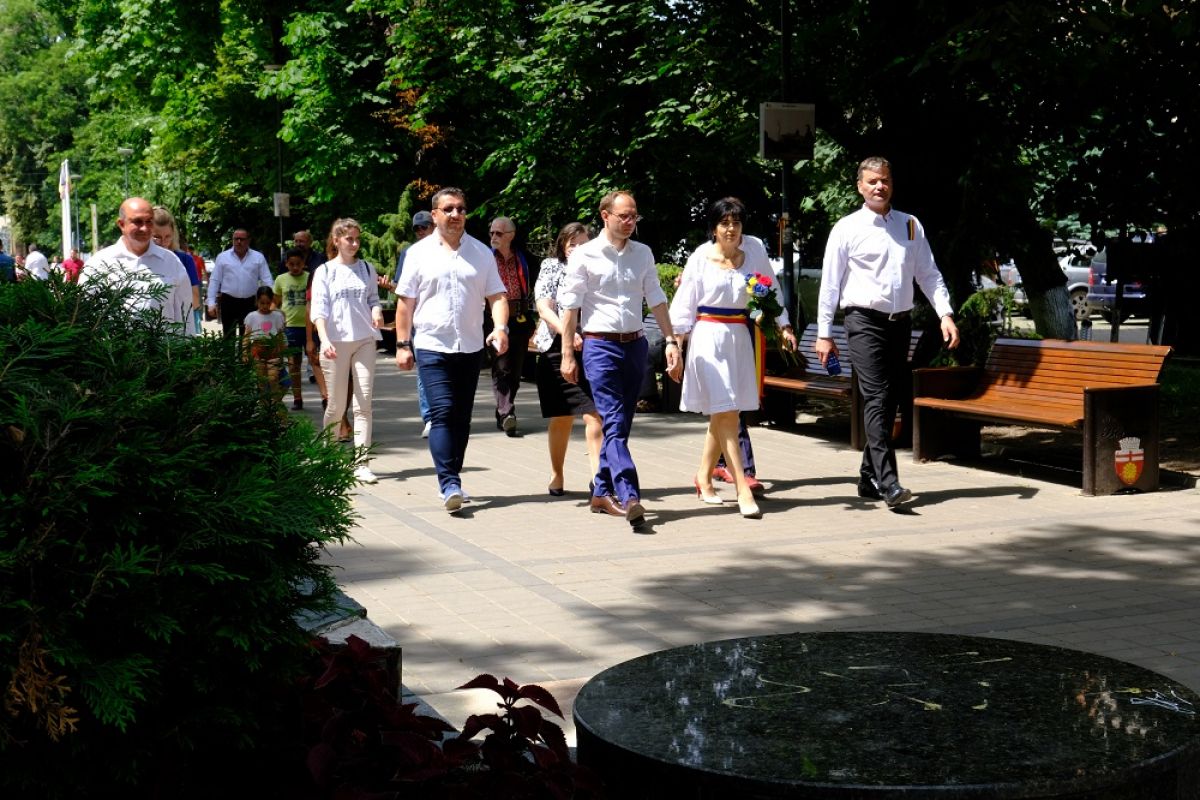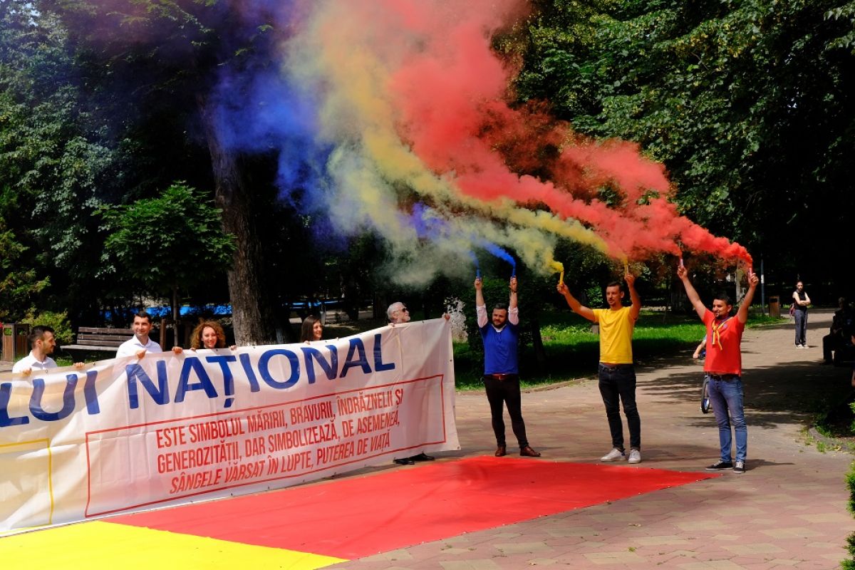 După ce au participat la momentele solemne, organizate de instituțiile publice cu scopul de a aduce cinste steagului românesc, aceștia au legat panglici tricolore pe stâlpii de iluminat de pe strada Nicolae Iorga, până pe Octav Onicescu, activitate coordonată de tinerii din cadrul TSD.