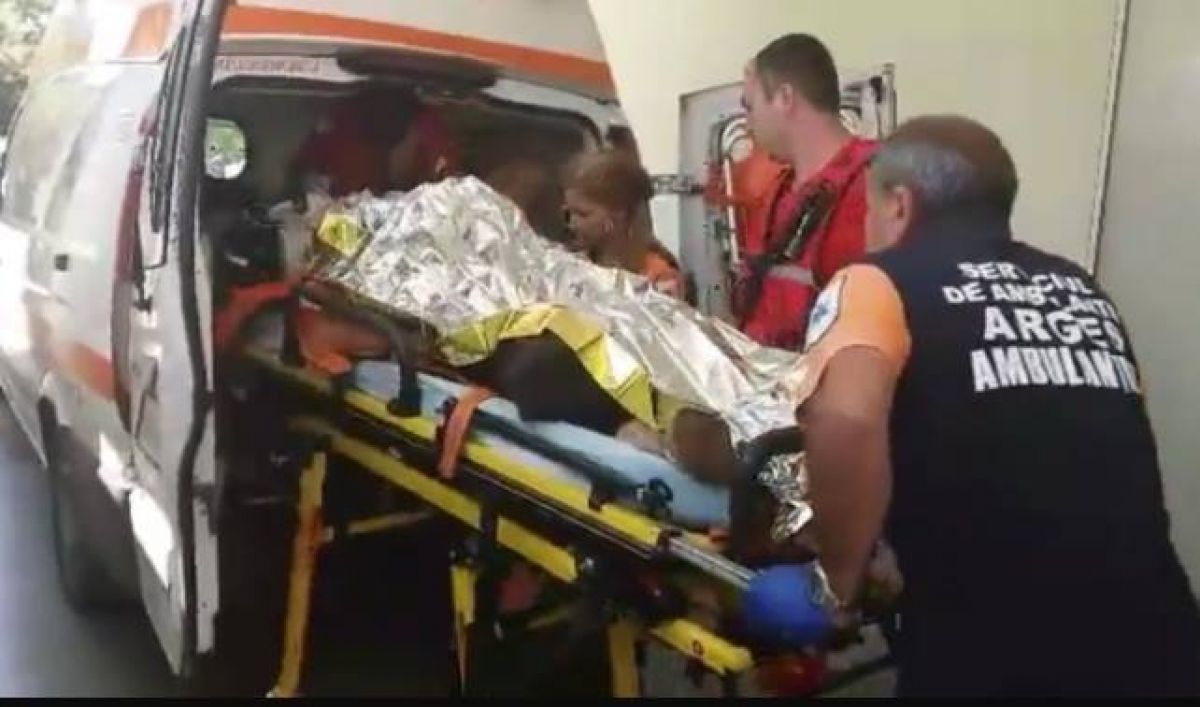 Femeia atacată în cofetărie a fost preluată de ambulanţă cu o hemoragie masivă şi a fost transportată la spitalul din Piteşti. Ulterior femeia a decedat. (Sursa: Observator)