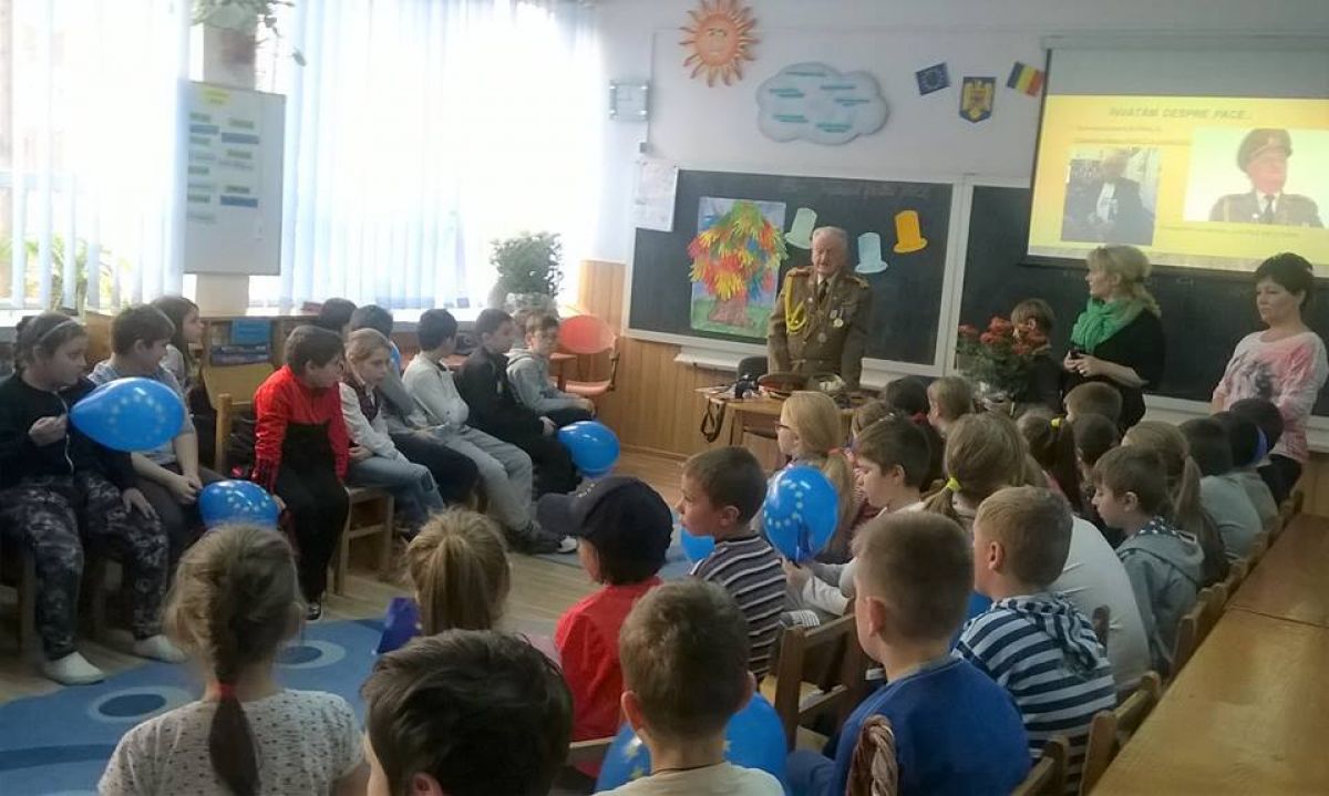 Activitatea a avut loc în cadrul Săptămânii Educației Globale, 2016 cu tema ”Împreună pentru pace” Timp de peste o oră, dl colonel Ilie Pascal, (care este învățător de meserie și un prolific autor de cărți, cu 30 de titluri apărute), a răspuns, cu multă putere de convingere, la un șir lung de întrebări din partea copiilor: