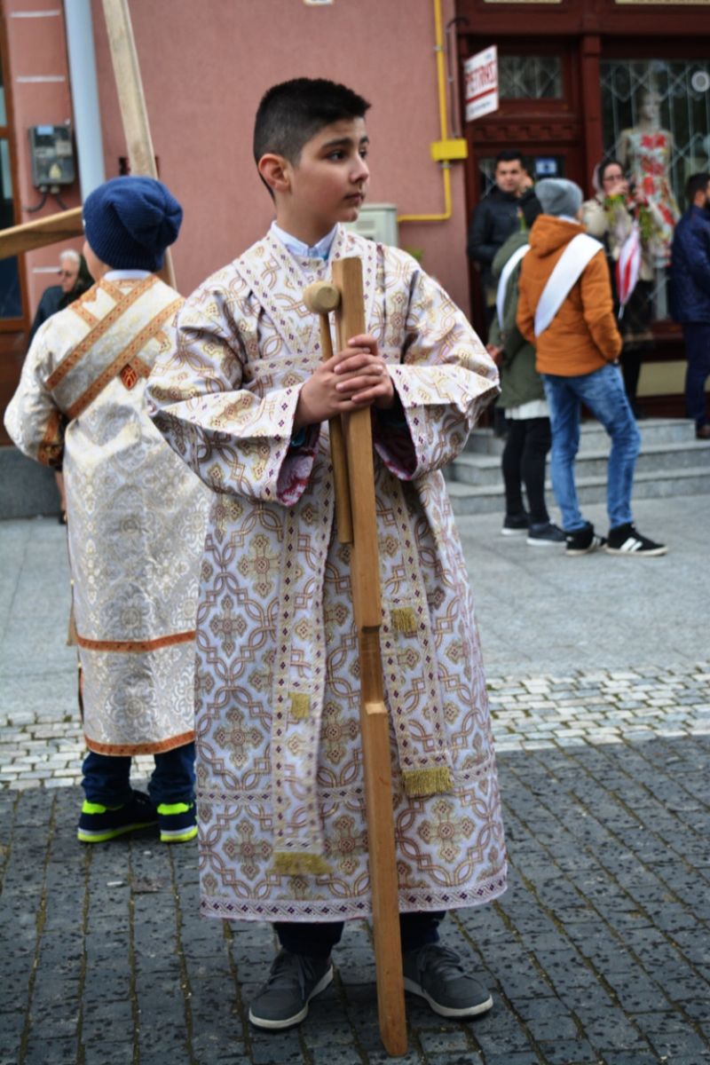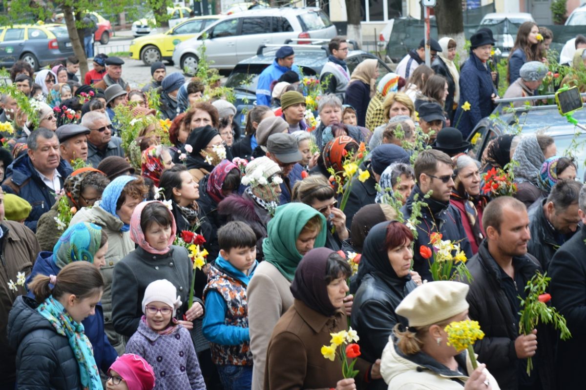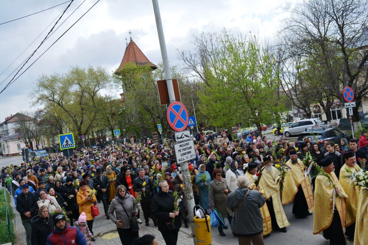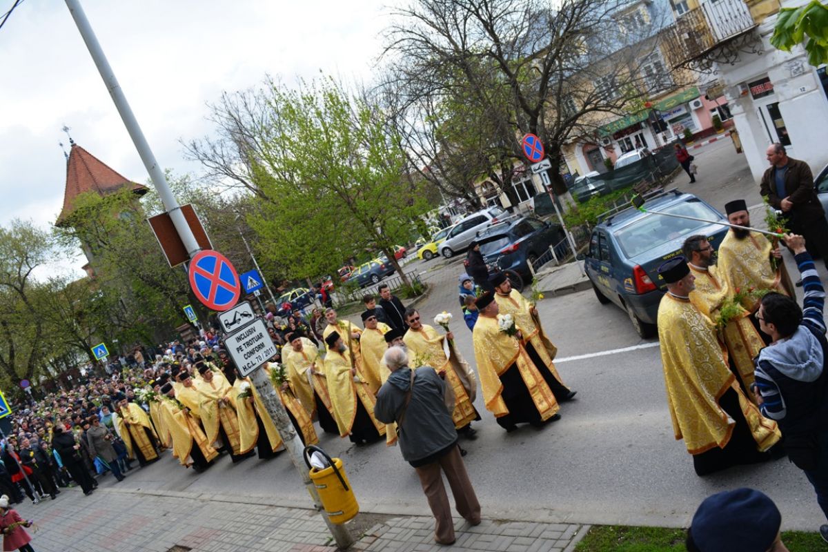 Au zăbovit în fața fiecărui locaș de cult, unde s-a citit din Sfânta Evanghelie, momente în care unii oameni s-au așezat în genunchi pe trotuare sau pietonale. Apoi, cu toții, într-un cor impresionant, au strigat: ”Osana! Osana!”