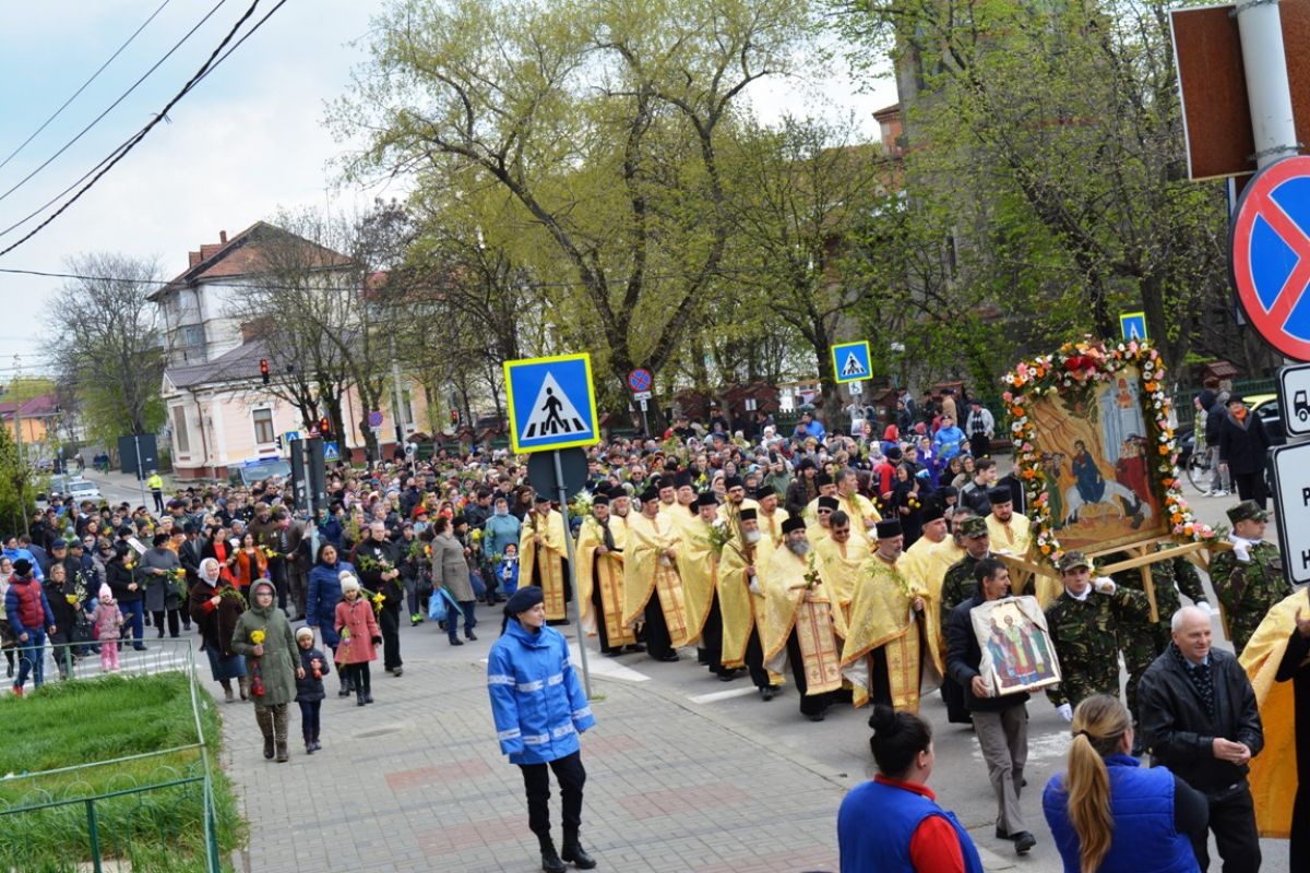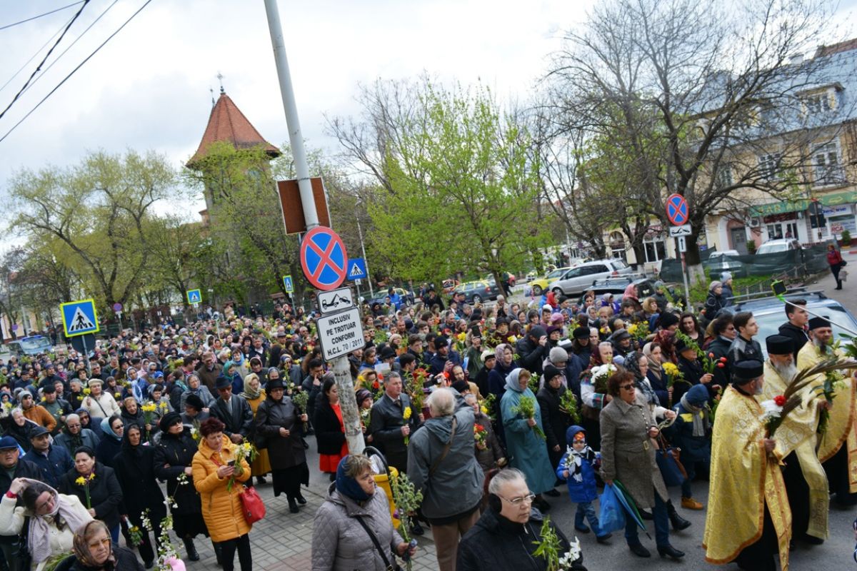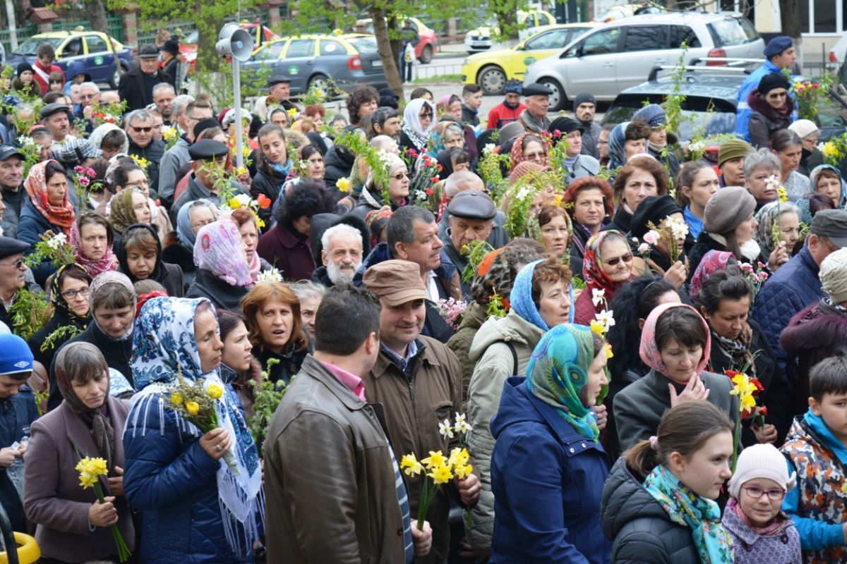 Cu flori, de la narcise la lalele și cu ramuri de salcie, enoriașii, precedați de zeci de preoți, s-au deplasat pe un traseu care a inclus bisericile Sfântul Gheorghe și Uspenia și care s-a finalizat la Biserica Sfântul Spiridon.