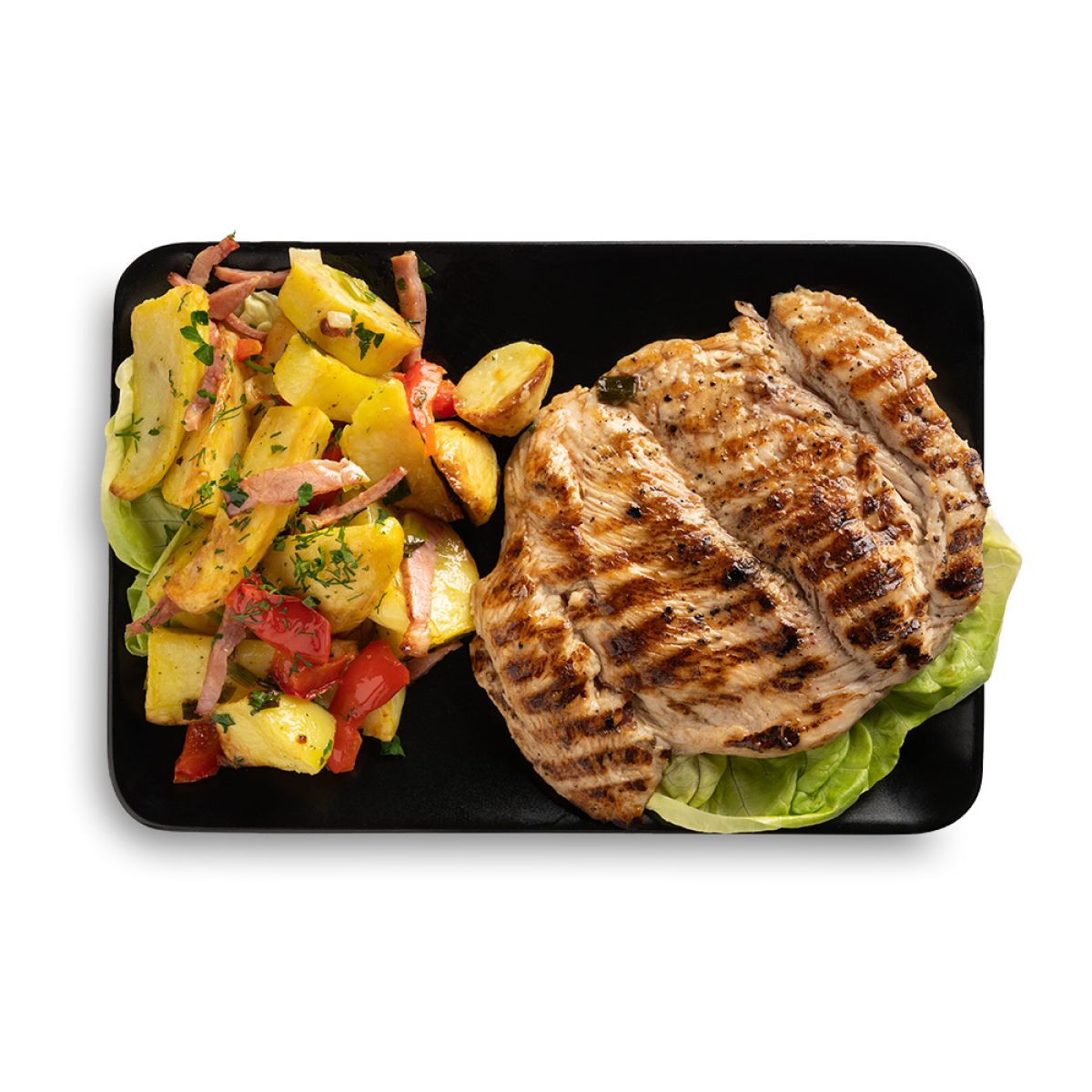 Ai la alegere întregul meniu de la ”Ospățul Regilor”, de la Piept de curcan la grătar cu cartofi țărănești și Pui picant cu ciuperci, ardei copți, ceapă alba, ardei iute, sare, piper, unt la Somon la grătar cu sos de lămâie și Meniu crispy cu cartofi prăjiți, salată de varză și maioneză cu usturoi.