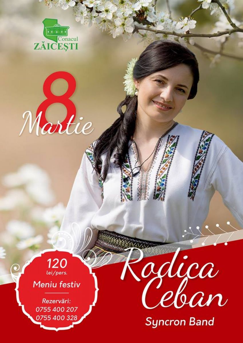 Pentru că 8 Martie înseamnă celebrarea eternului feminin, o bună reprezentană în acest sens va fi invitata Rodica Ceban, interpretă de muzică populară din Republica Moldova.