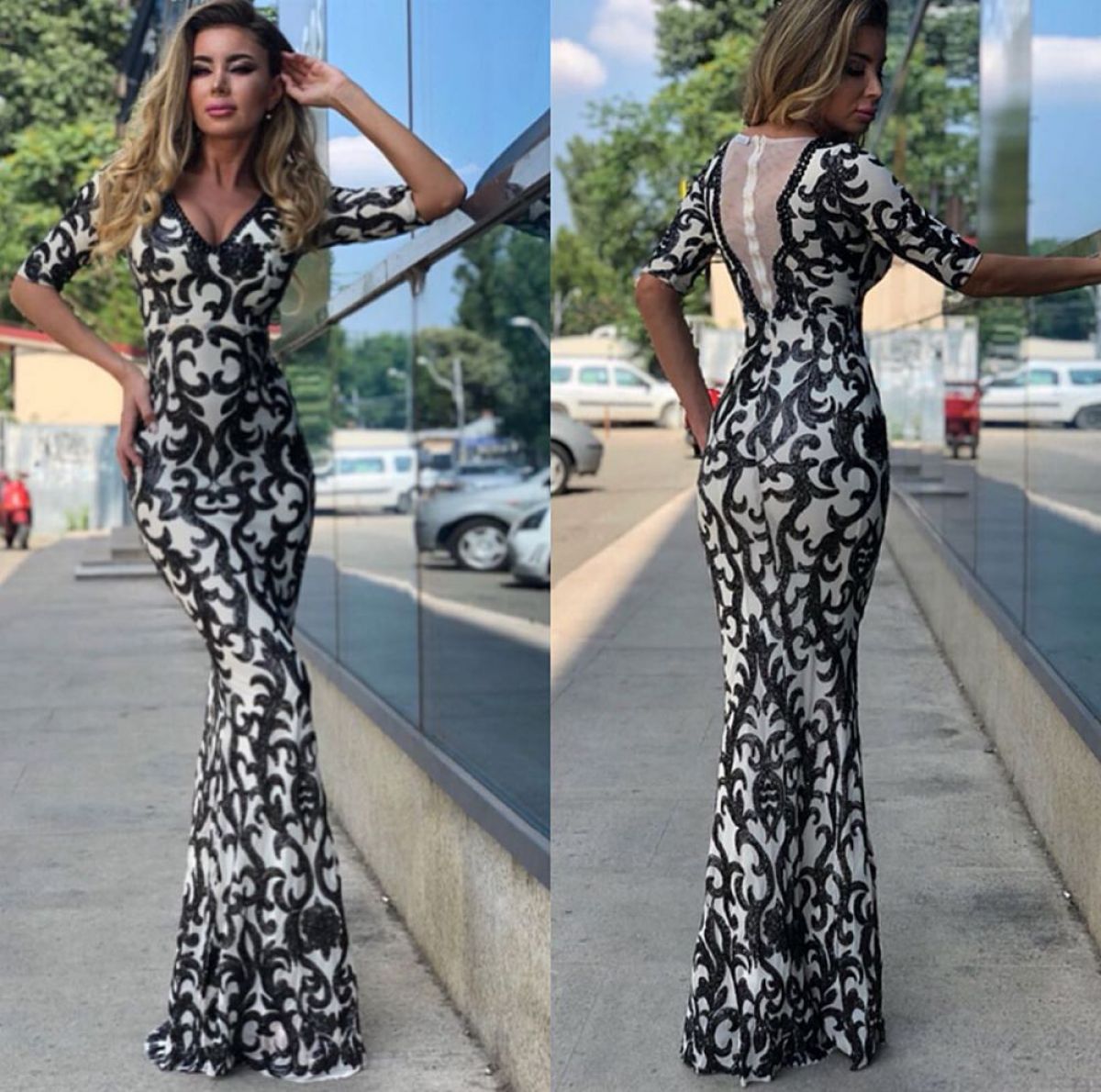Paietele sunt un must sezonul acesta si arata foarte bine pe orice tip de silueta. Modelul acestei rochii de seara este unul imperial, in care te vei simti extraordinar! Materialul care iti contureaza silueta, precum si decupajul deosebit de pe spate, sunt cele doua motive pentru care nu vei regreta nicio secunda o astfel de achizitie. Daca iti place sa fii in centrul atentiei, aceasta este alegerea perfecta pentru tine. Alege sandale negre din catifea si opteaza pentru o coafura atent studiata, dar cu un aspect foarte natural.