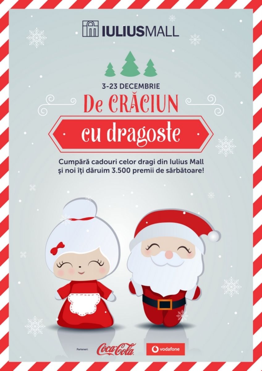Crăciunul este sărbătoarea ce reunește întreaga familie și care aduce bucuria în sufletele celor mici, dar și ale celor mari. De aceea, în luna decembrie, Iulius Mall Suceava te ajută să aduci magia Crăciunului în locuința ta și te premiază cu cele mai frumoase cadouri, numai bune de pus sub brad. Până pe 23 decembrie se desfășoară campania „De Crăciun, cu dragoste”. Dacă ești în căutarea darurilor pentru cei dragi și faci cumpărături în valoare de 100 de lei, te așteptăm la Centrul Info, unde spiridușele Moșului te vor ajuta să te înscrii la tombola iernii. Zilnic, primii 160 de participanți vor fi răsplătiți cu premii instant, prin alegerea unei cutii de cadou: sesiuni de înfrumusețare, vouchere pentru bijuterii prețioase, seturi de cosmetice, jocuri de societate, sticle de vin, bomboane de ciocolată sau băuturi răcoritoare.