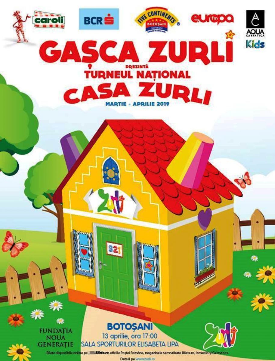 Spectacolul va avea loc la Sala Polivalentă, de la ora 17:00 și se va intitula ”Casa Zurli”. După cum și numele lasă de bănuit, nu se va adresa doar copiilor, ci și părinților întrucât și unii și ceilalți vor învăța să aprecieze lucrurile pe care le au și să își respecte casa și regulile după care funcționează bine orice familie din România.