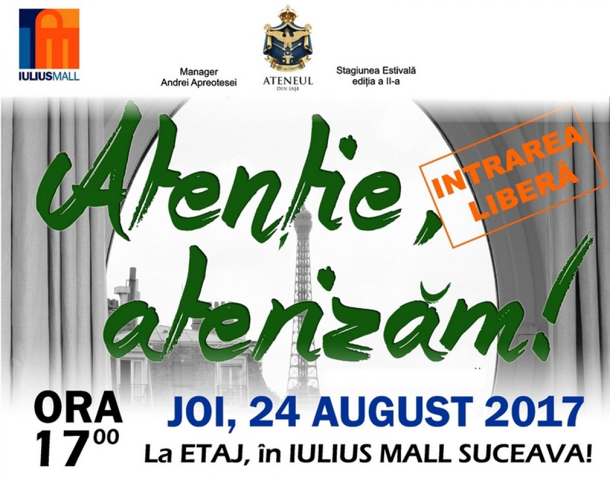 Iulius Mall Suceava vă invită să petreceți două seri memorabile, în compania actorilor Ateneului din Iași și a unor spectacole de teatru de excepție.