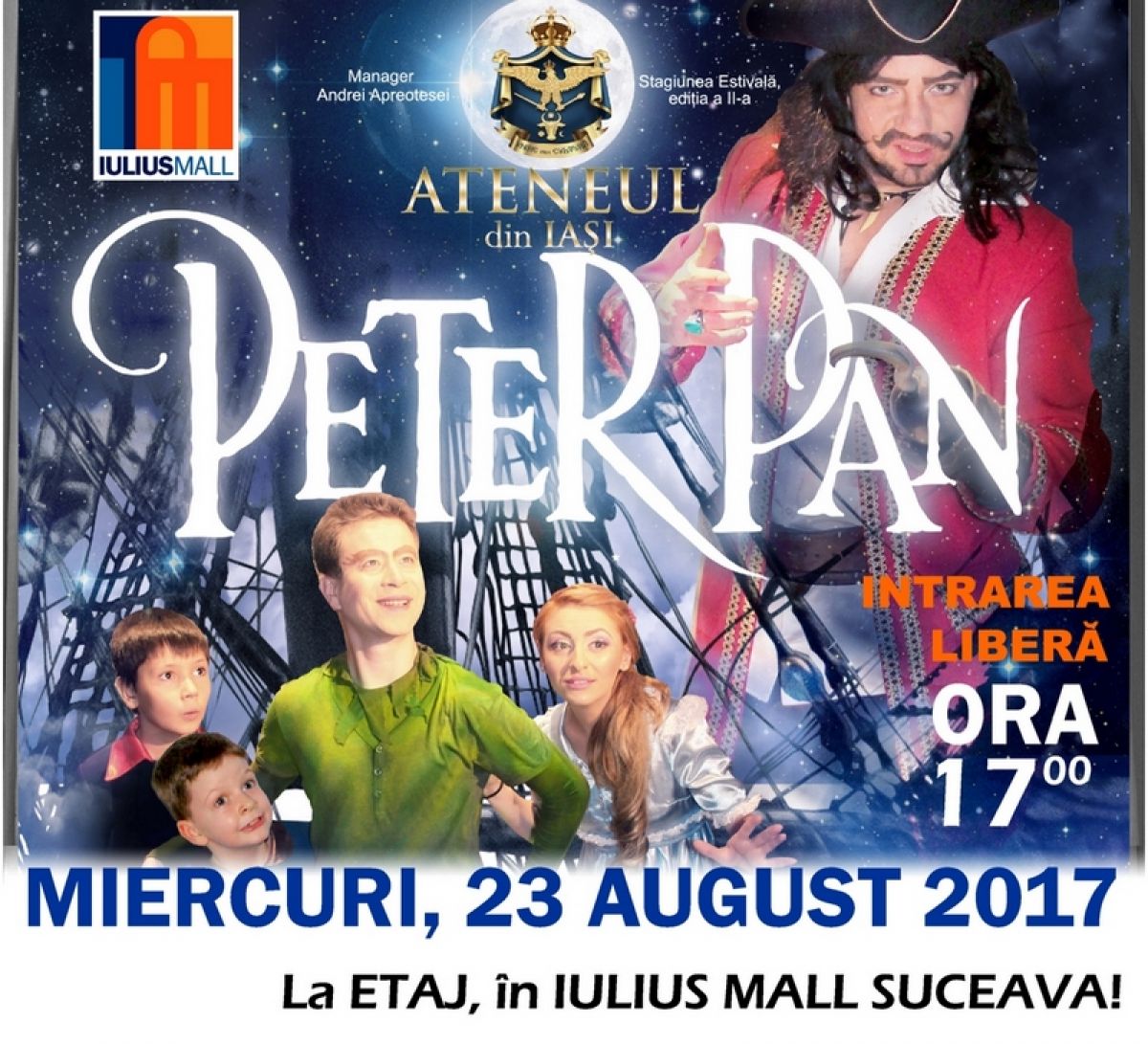 Hai la teatru cu mic, cu mare! Iulius Mall Suceava vă invită la două seri consecutive cu spectacole susținute de artiștii Ateneului din Iași. „Peter Pan” și „Atenție, aterizăm!” sunt piesele prezentate în cadrul turneului „Ateneul ieşean în oraşele Moldovei”.