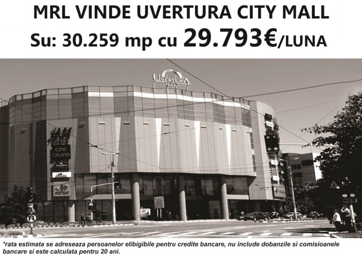 Mall-ul este scos la la vânzare prin licitaţie publică la data de 30.10.2017, ora 11.00 la prețul de 32.749.510 lei, echivalentul a unei rate lunare de 29.793 Euro/luna. Menționăm că rată estimată se adresează persoanelor eligibile pentru credite bancare, nu include dobânzile și comisioanele bancare și este calculată pentru 20 de ani.