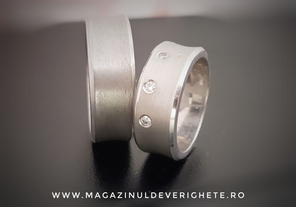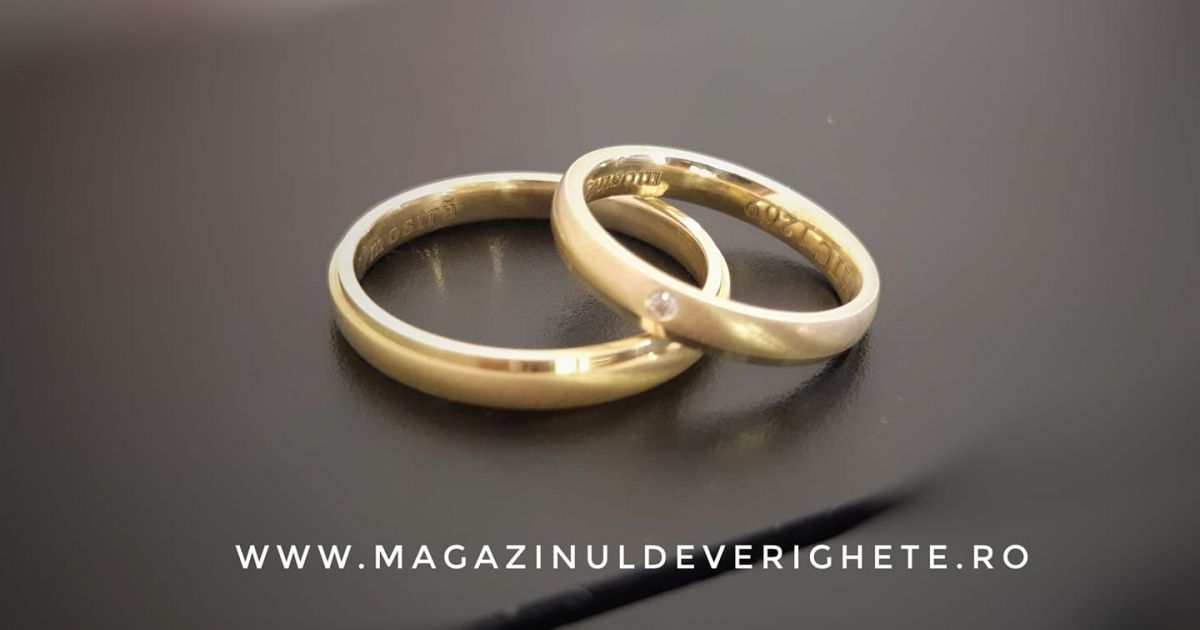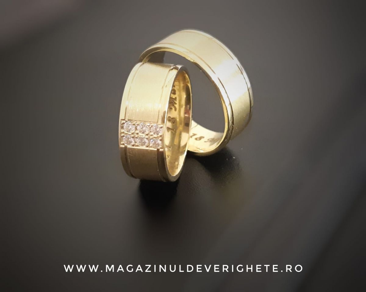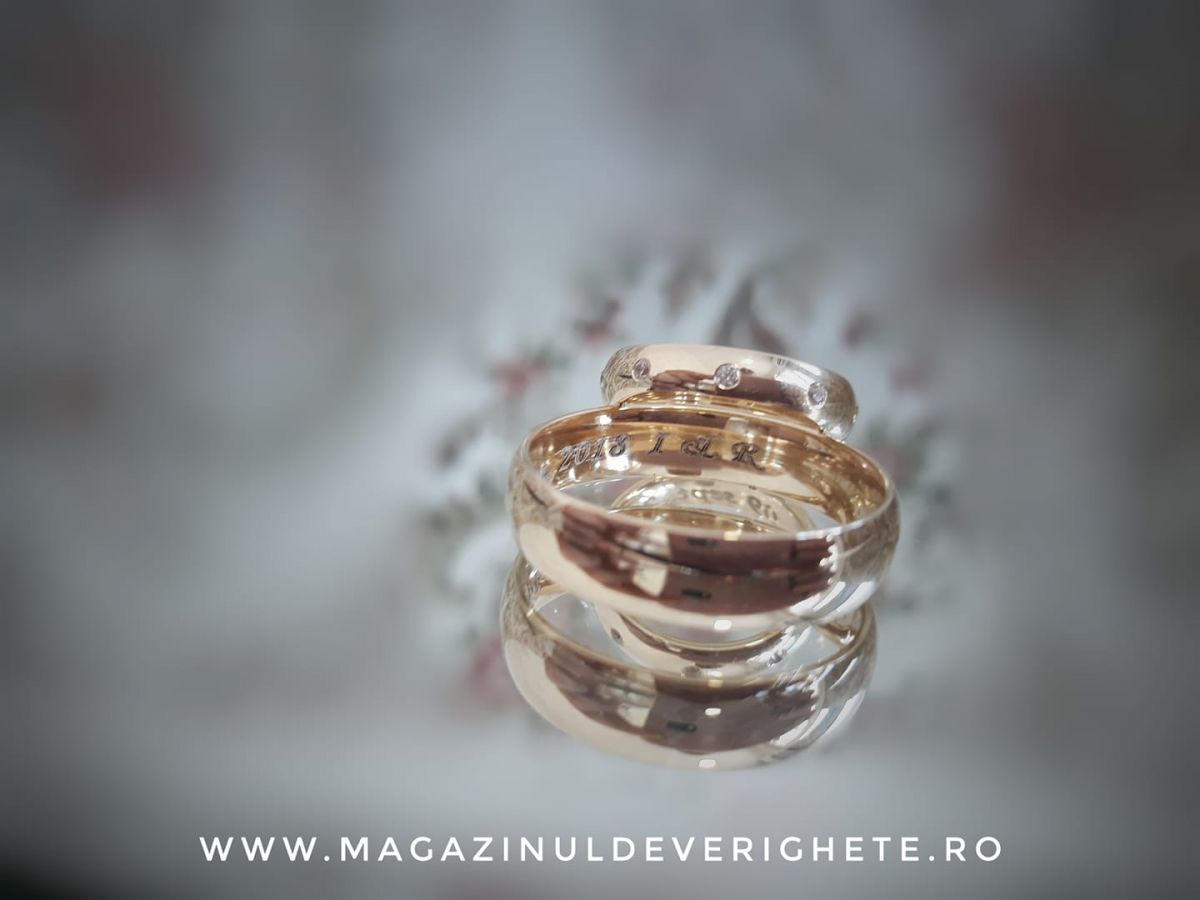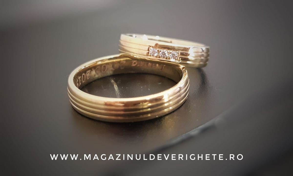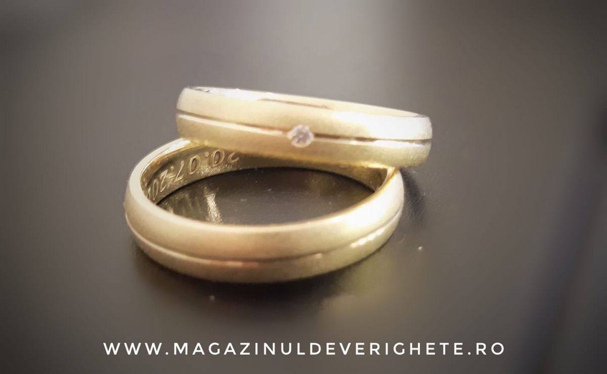 La noi găsiți verighete de 14 carate și de 18 carate făcute după cele mai noi tehnologii din domeniu, fără metale toxice pentru organism și care să se decoloreze în timp. Adică, la noi albul chiar rămâne alb! Le recomandăm pe cele dintâi întrucât aurul de 14 K este mai dur și conferă o rezistență ridicată în timp.