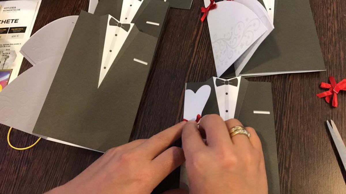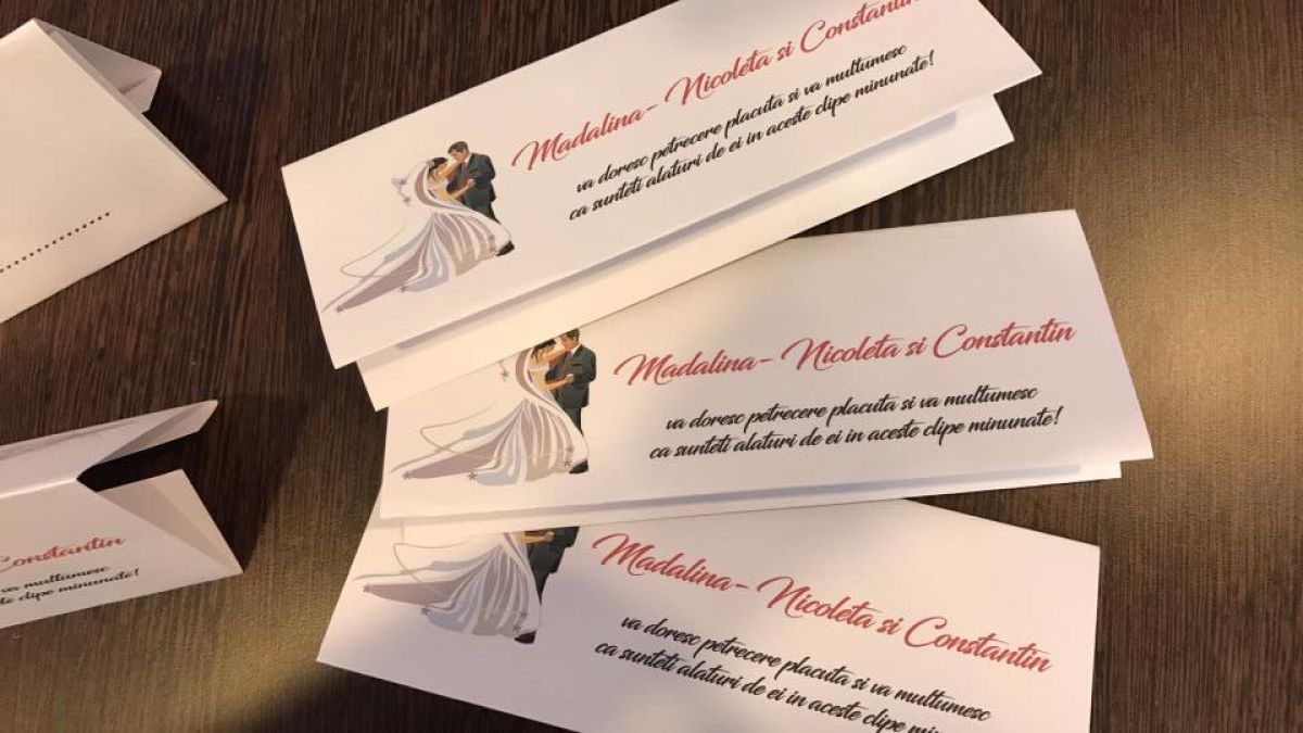 „Clienţii noştri de la foto - video beneficiază de o reducere de 10% pentru invitaţii şi plicuri de bani”,