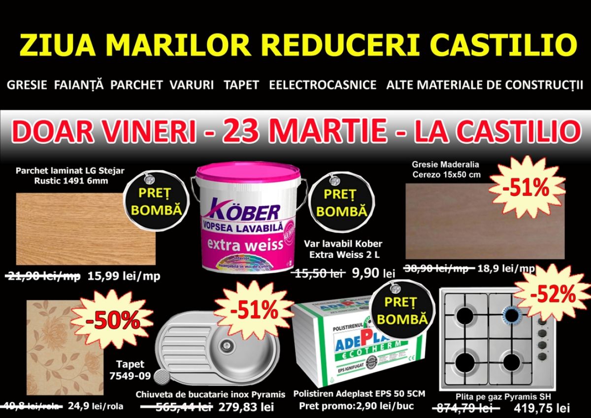 (P) Ziua Marilor Reduceri la Castilio DOAR vineri, 23 martie. Vezi produsele aflate la reducere!