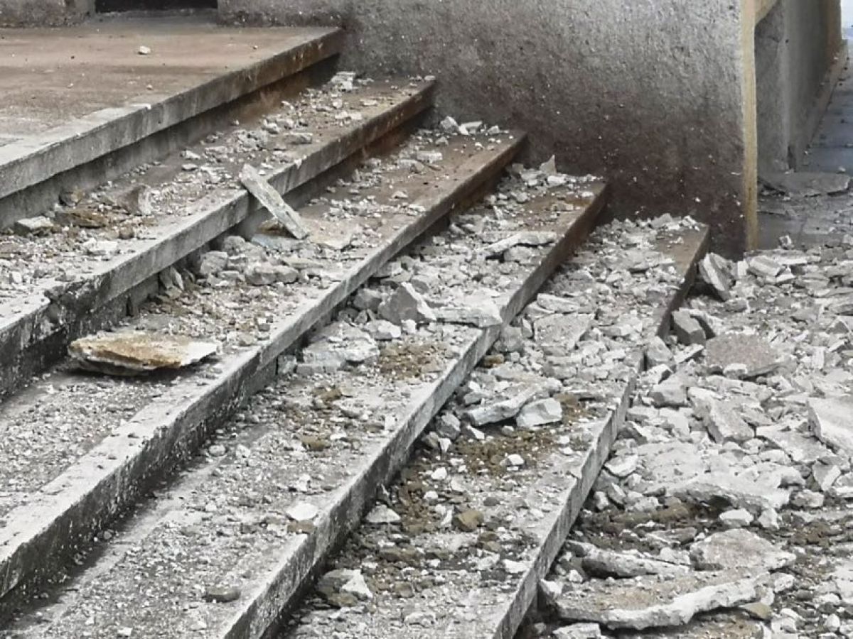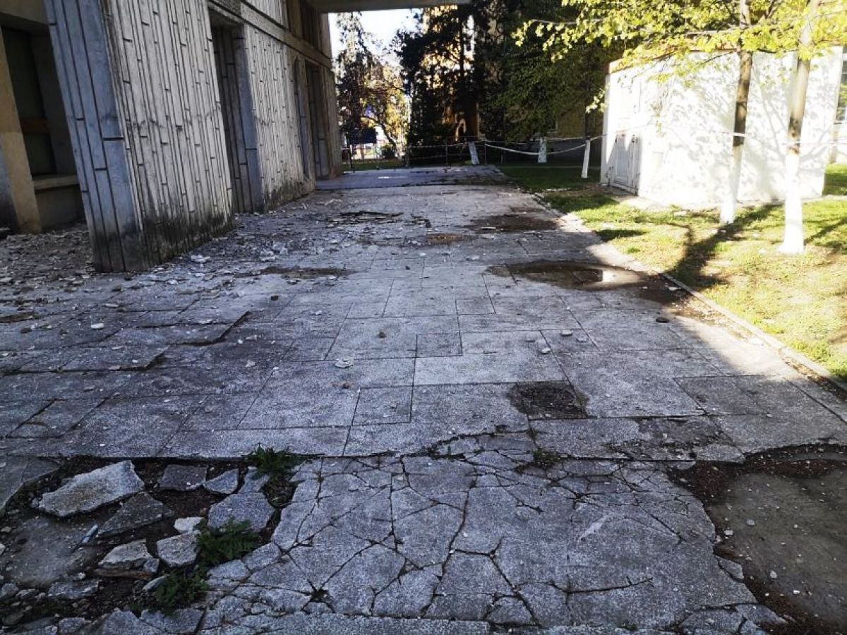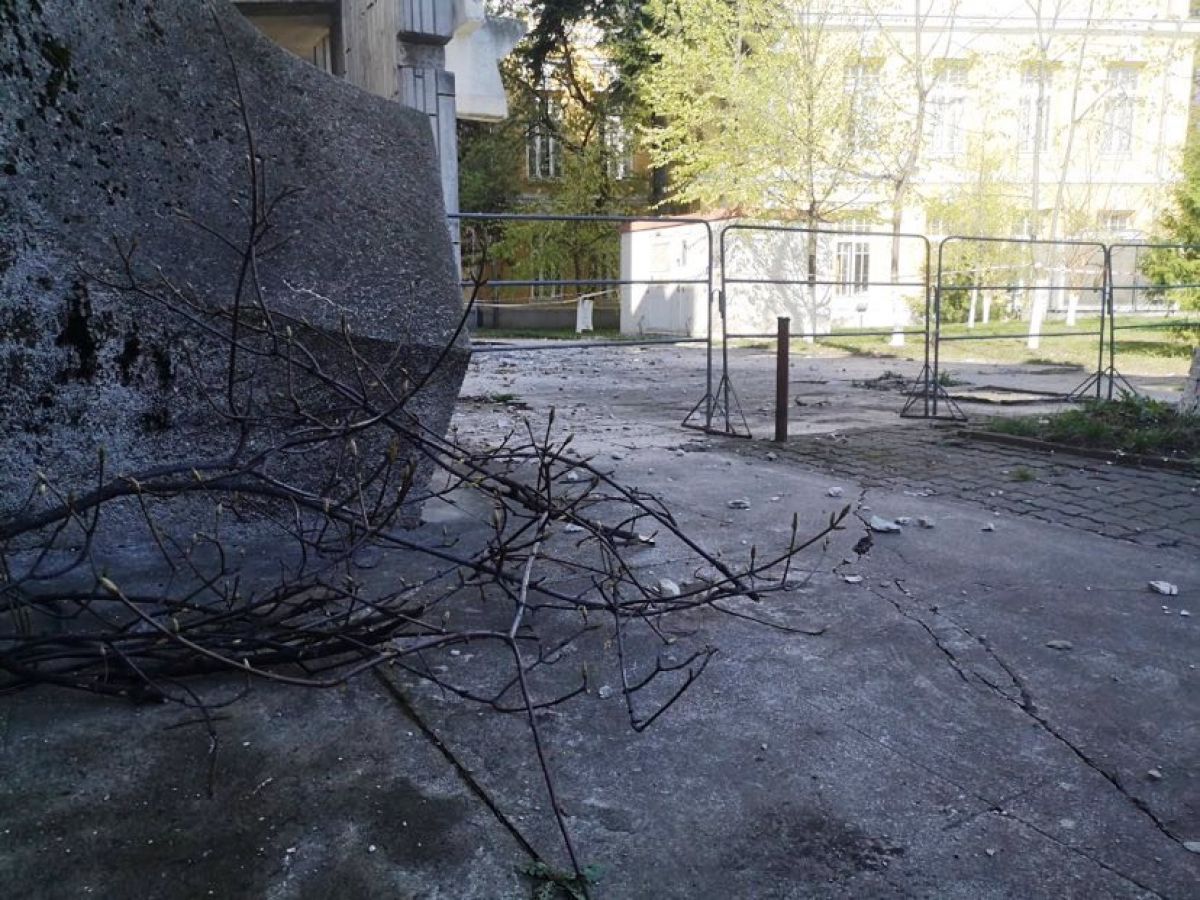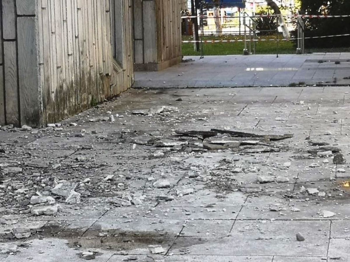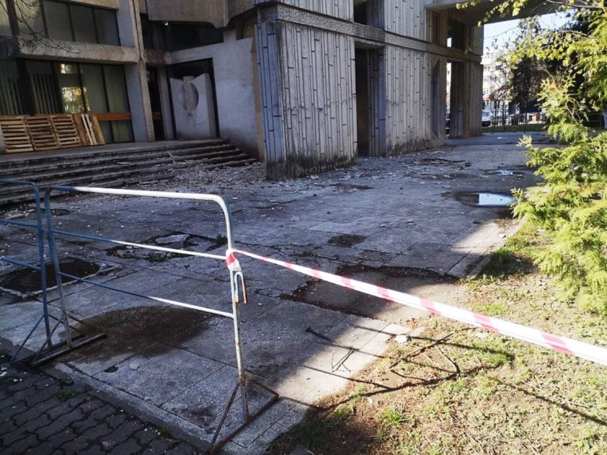Bucăți mai mici sau mai mari din tencuială se desprind de pe clădire, cu precădere în partea din față, spre Primăria Botoșani. De mai bine de doi ani circulația pietonală a și fost restricționată în acea zonă, după o ”ploaie” de pavaje (vezi foto).
