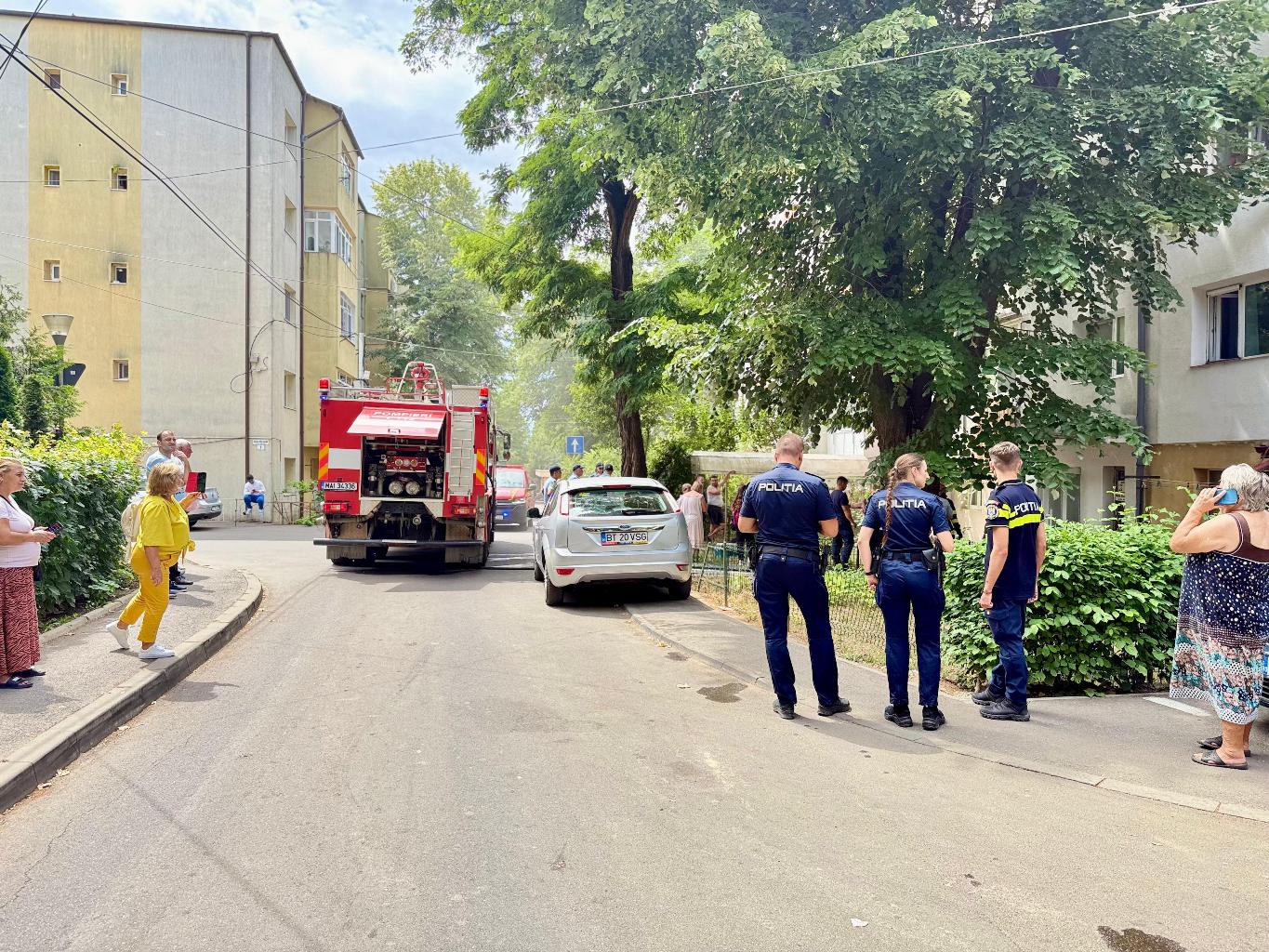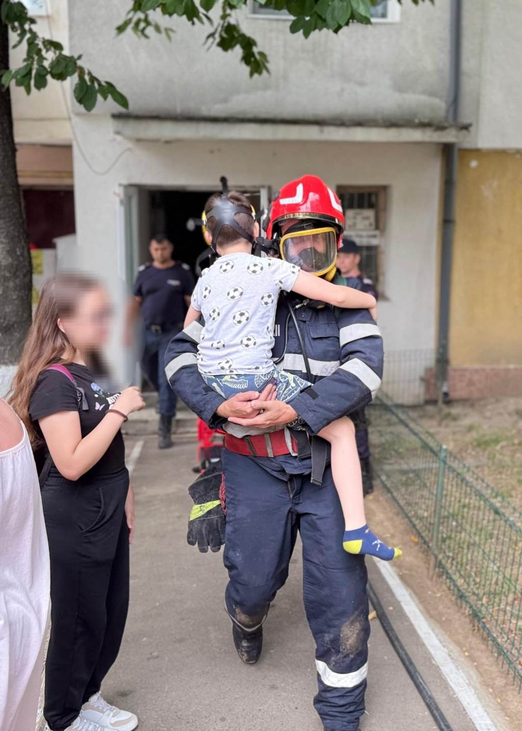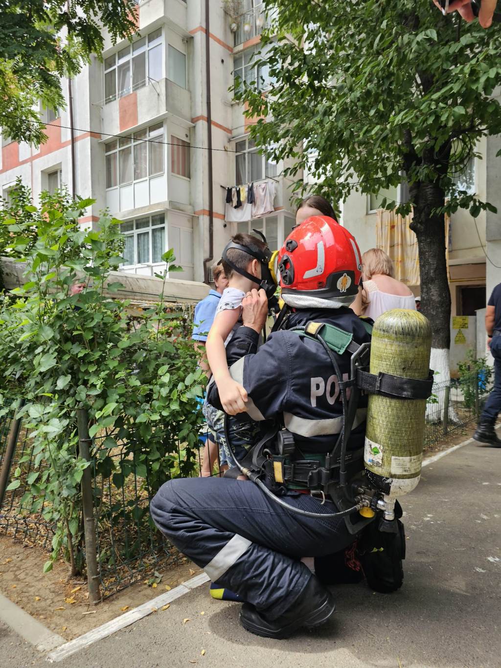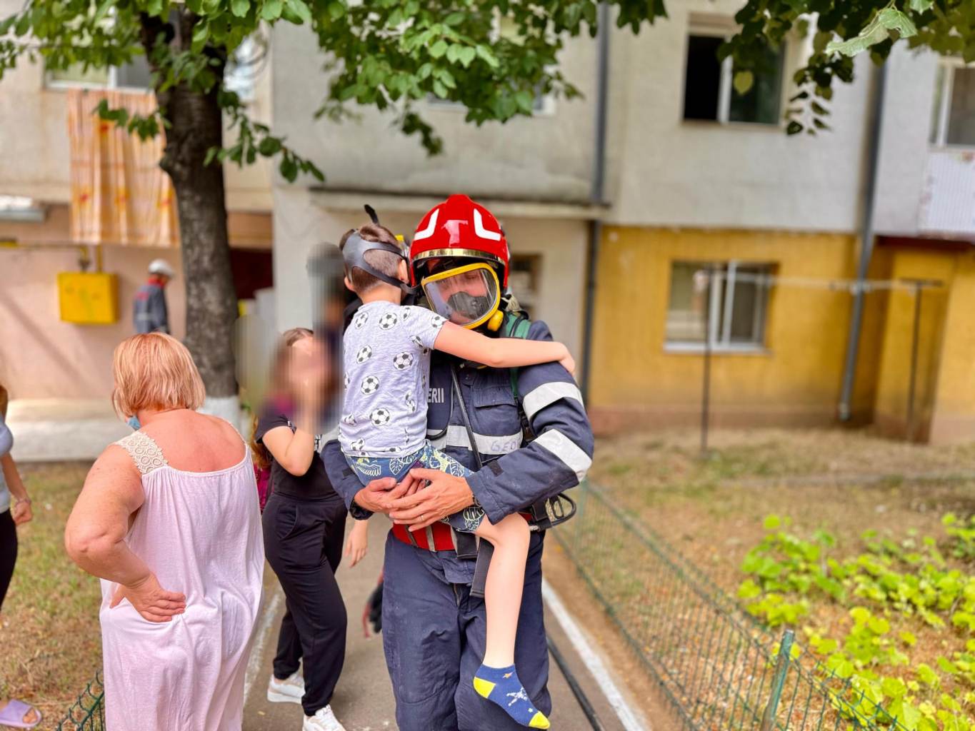 Salvatorii au acționat și pentru evacuarea unui băiat, în vârstă de 10 ani, care era singur într-o garsonieră de la etajului IV.