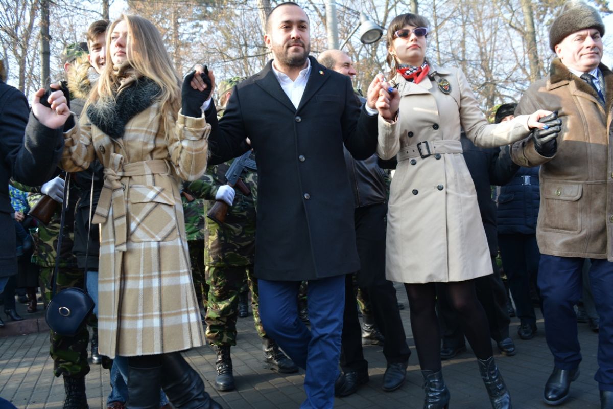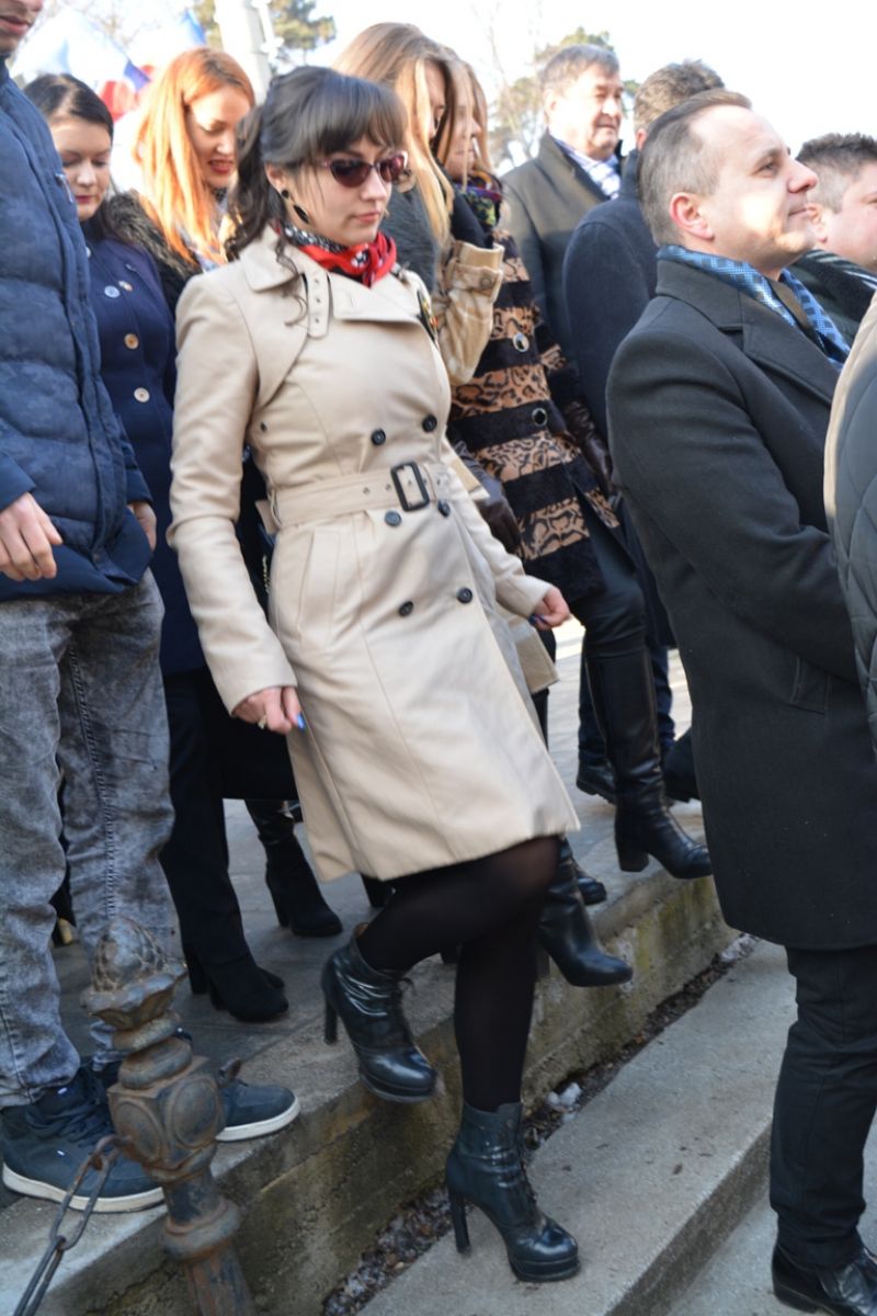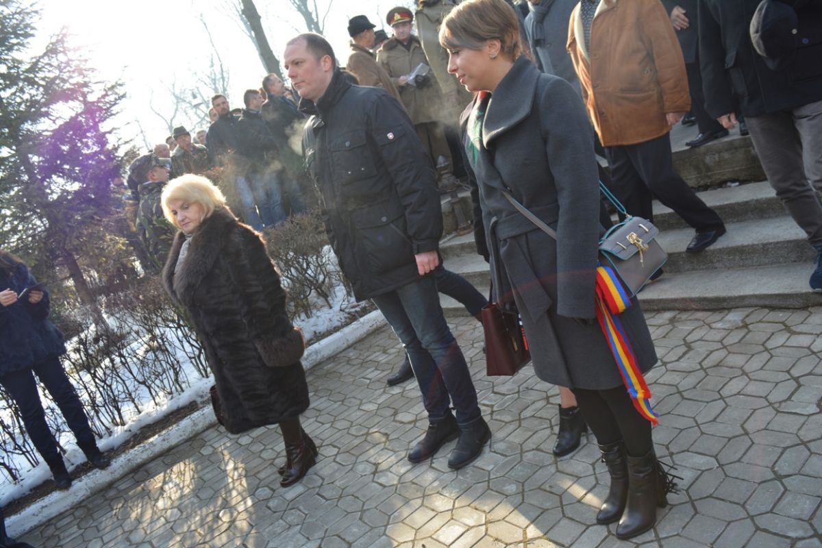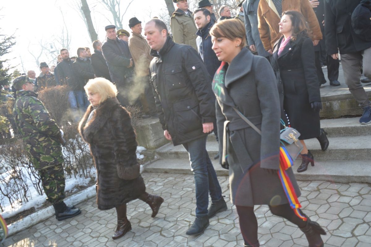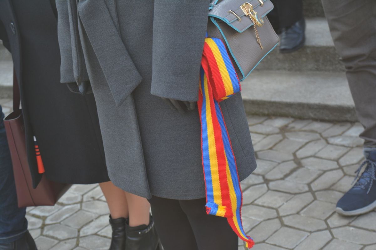 O consilieră municipală de la PSD, Andreea Buiuc, şi-a ataşat la geantă un tricolor generos, în timp ce directoarea de la Centrul Judeţean pentru Conservarea şi Promovarea Culturii Tradiţionale, Cornelia Ciobanu, a… conservat tradiţia şi la festivitate, venind îmbrăcată în costum popular.