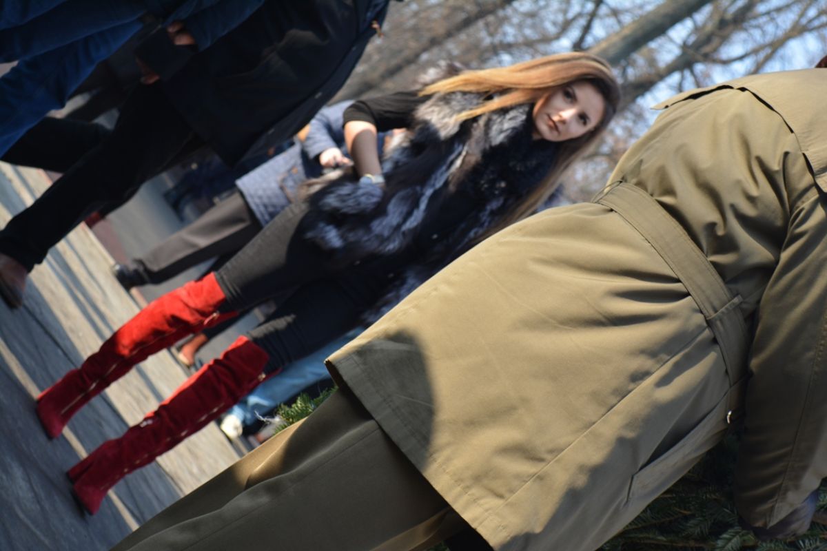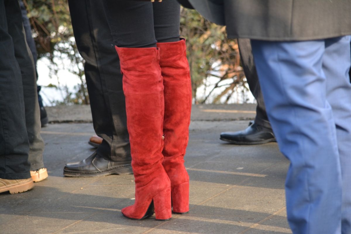 A fost practic o defilare a tot felul de ţinute, la capitolul extravaganţă remarcându-se o tânără din PNL, venită în pantaloni de piele şi o alta, de la PMP, venită într-o vestimentaţie cu mâneci doar până la cot şi în nişte cizme roşii cât se poate de înalte.