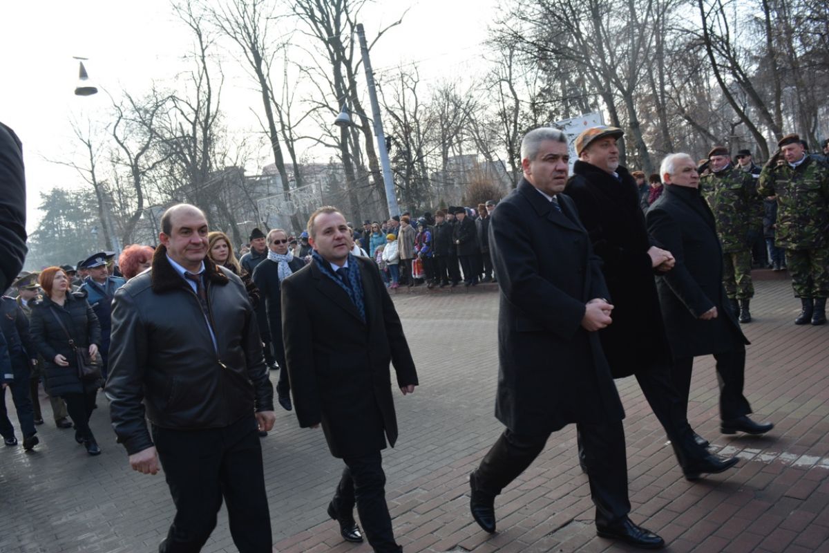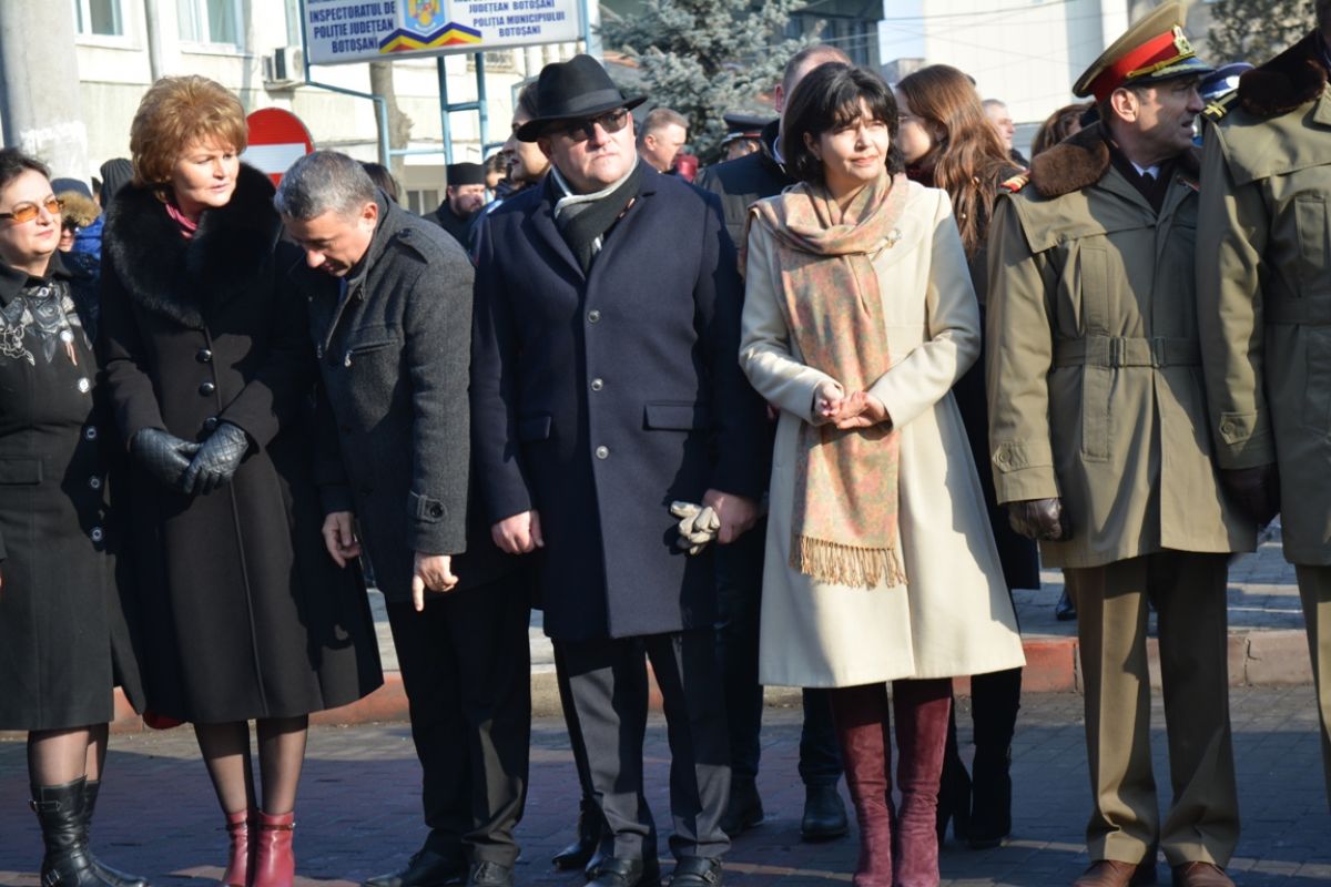 Festivitatea organizată la statuia domnitorului Alexandru Ioan Cuza din faţa Inspectoratului de Poliţie Judeţean a presupus deplasarea în grup a şefilor de instituţii şi liderilor de partid pe Pietonalul Unirii, din Piaţa Revoluţiei şi până la sediul IPJ.