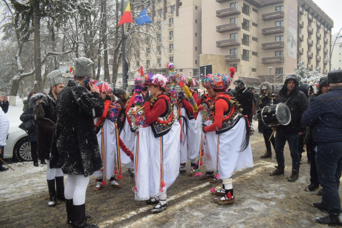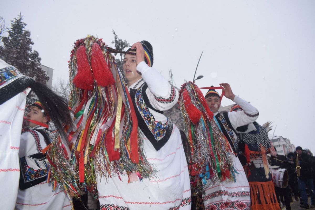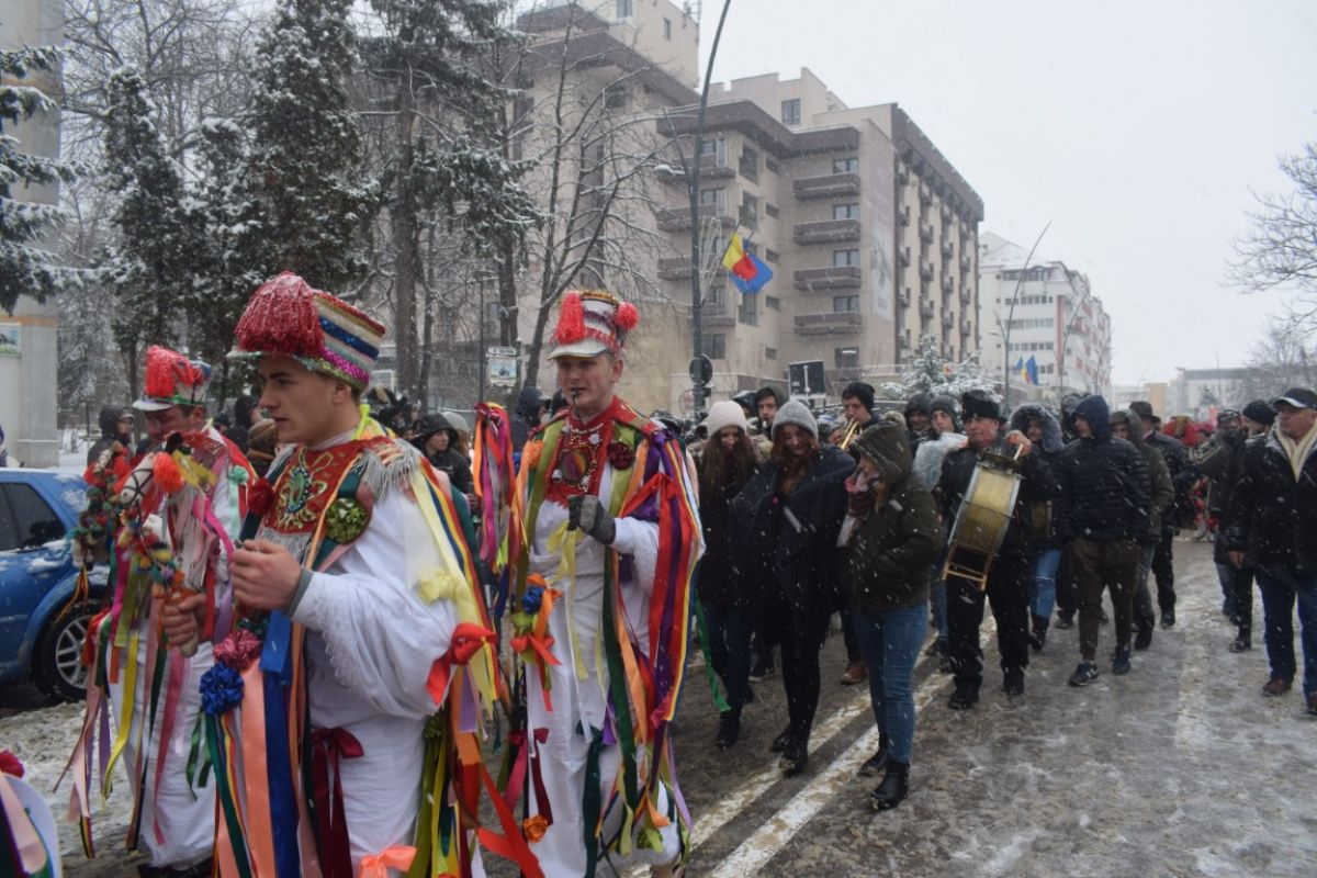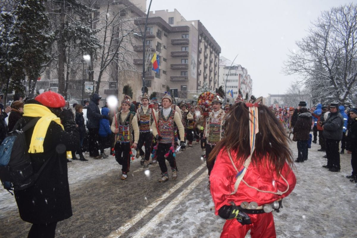 A ajutat din plin zăpada care cădea în fulgi mici peste oraș. Într-un peisaj de poveste și învăluiți de vocea blândă a Corneliei Ciobanu, directorul Centrului pentru Conservarea și Promovarea Culturii Tradiționale, participanții s-au aliniat frumos în Piața Revoluției.