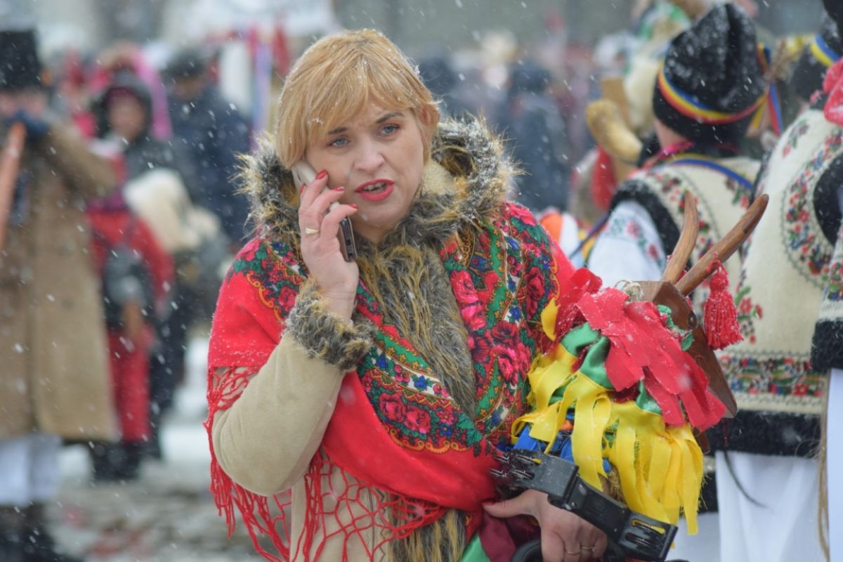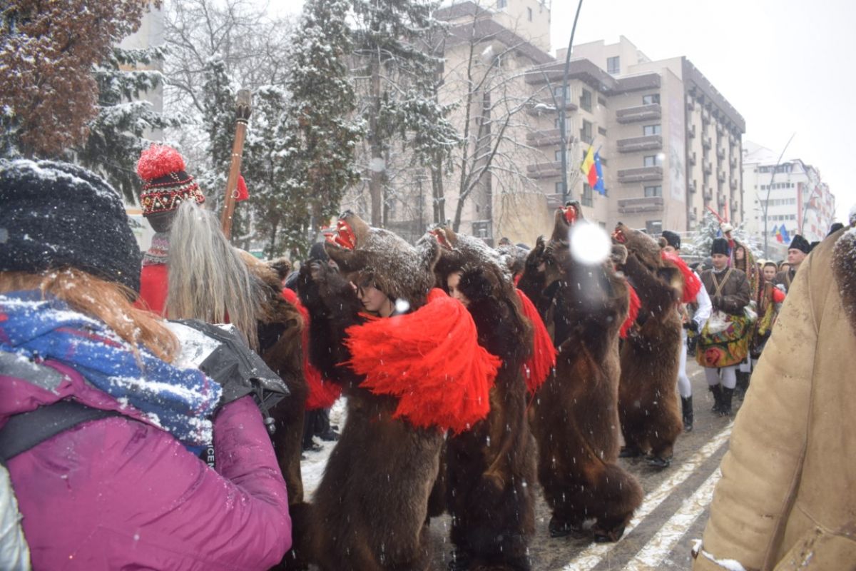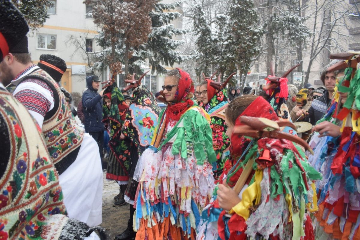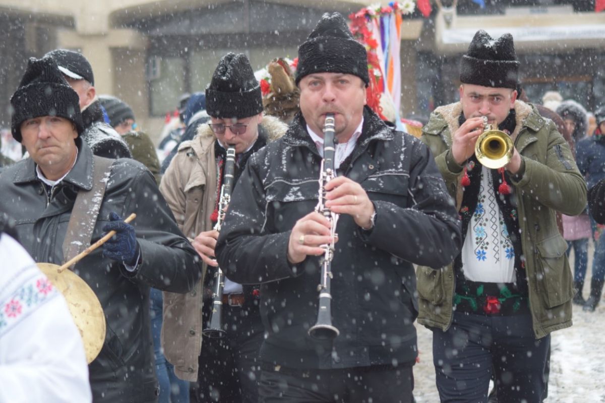 A ajutat din plin zăpada care cădea în fulgi mici peste oraș. Într-un peisaj de poveste și învăluiți de vocea blândă a Corneliei Ciobanu, directorul Centrului pentru Conservarea și Promovarea Culturii Tradiționale, participanții s-au aliniat frumos în Piața Revoluției.