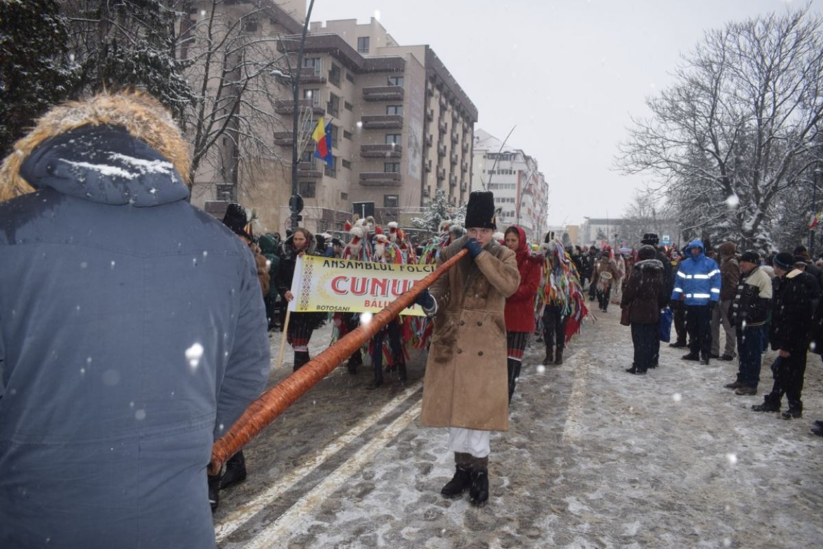31 de ansambluri și formații artistice au năvălit în municipiul Botoșani. Au ajuns chiar și cei care au avut câteva ore de mers cu mașina, de prin Maramureș sau din Bacău și Neamț. Au venit toți râzând pentru parada pe care le-au oferit-o oamenilor din Botoșani care s-au aliniat de-o parte și de cealaltă pe trotuare și i-au filmat cu telefoanele.