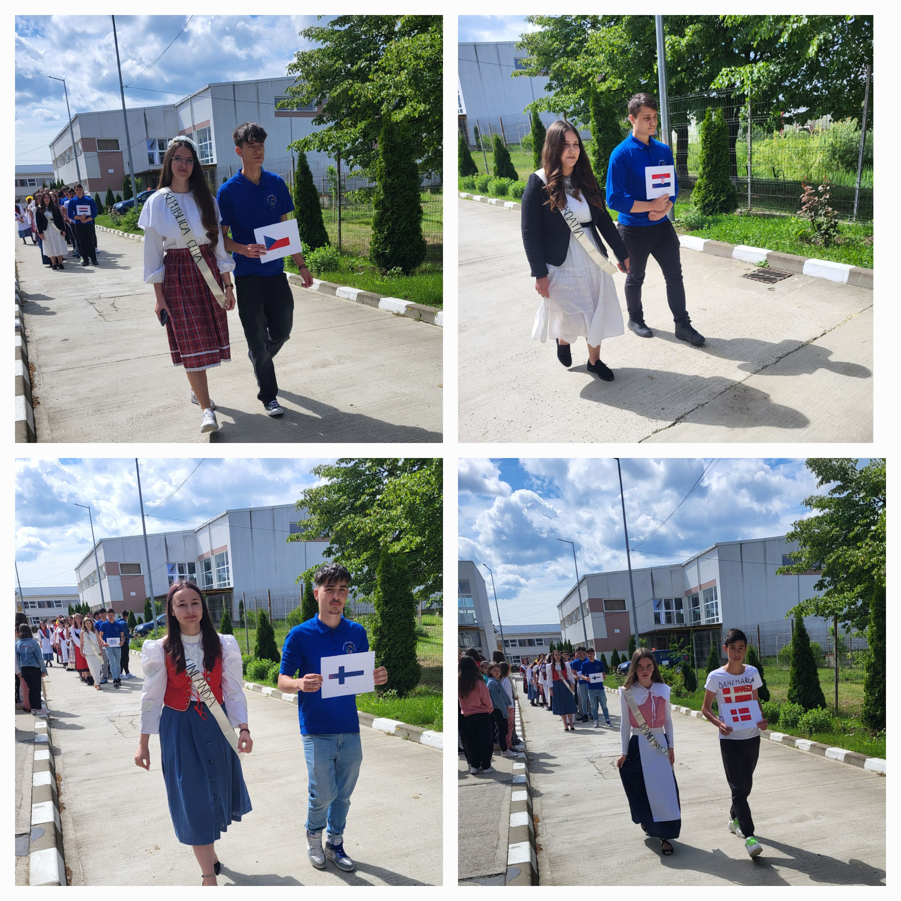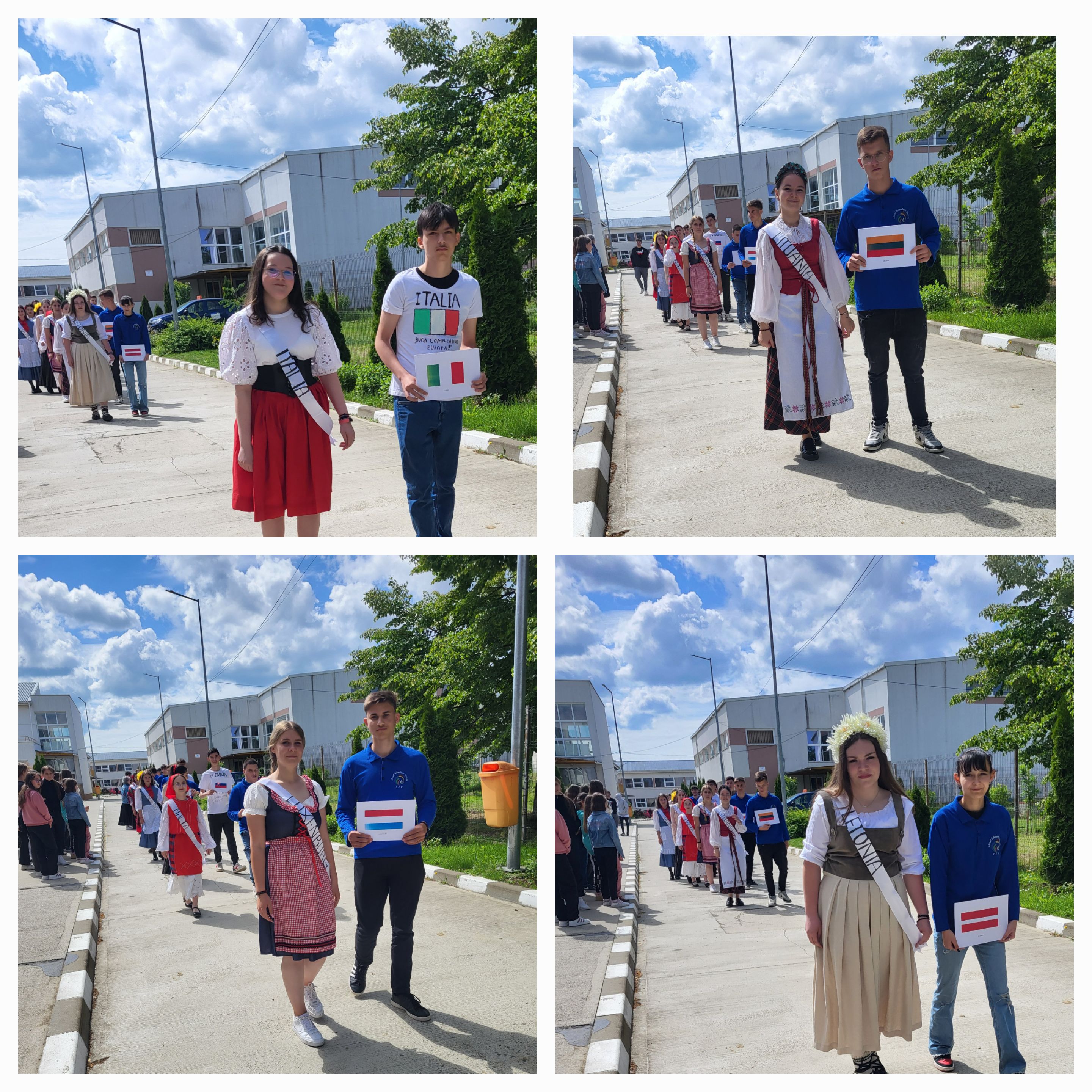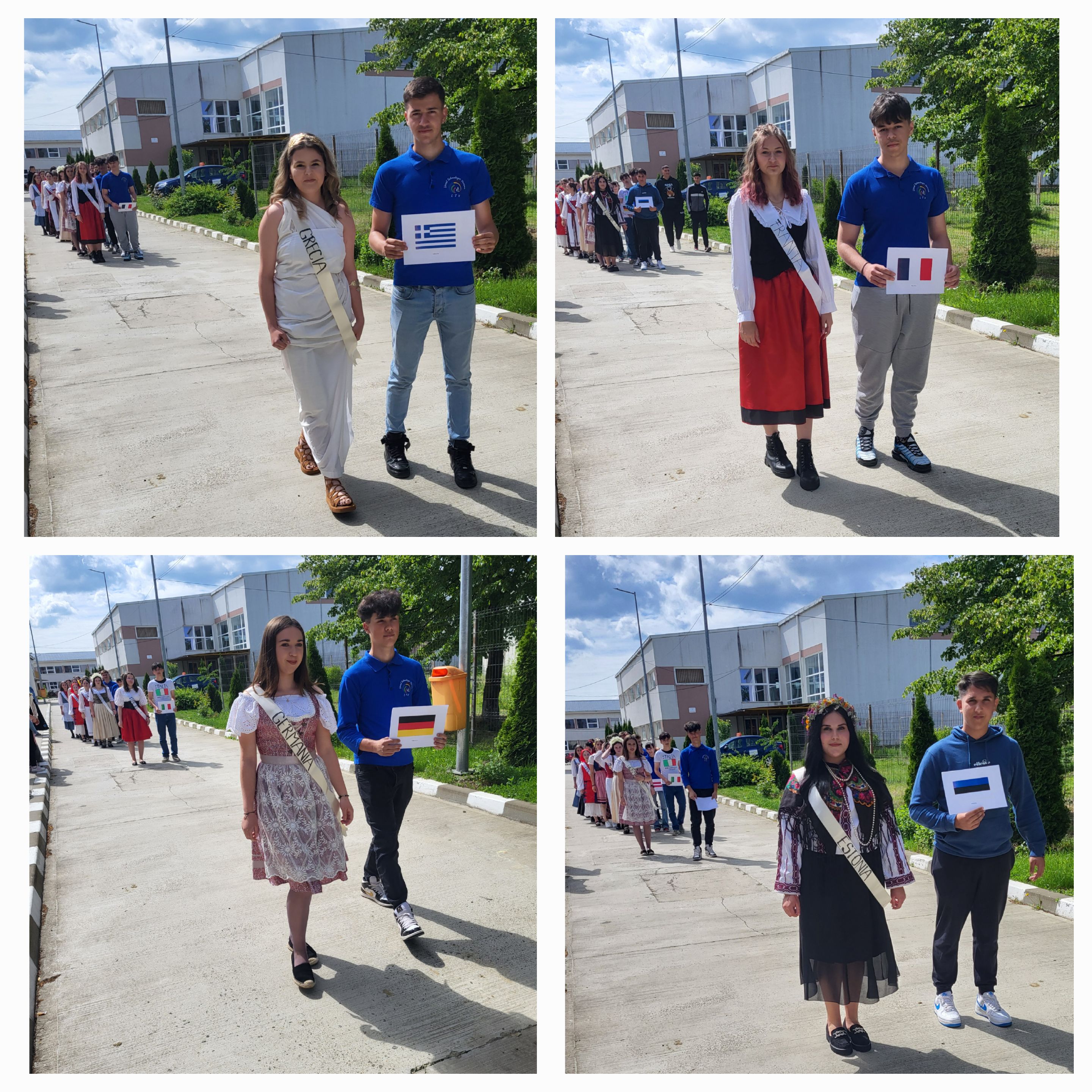 Fiecare fată din clasele participante a avut de recreat o ținută tradițională din unul din statele membre UE . În ziua de 9 mai, în curtea liceului a avut loc parada costumelor tradiționale și a steagurilor statelor membre UE .