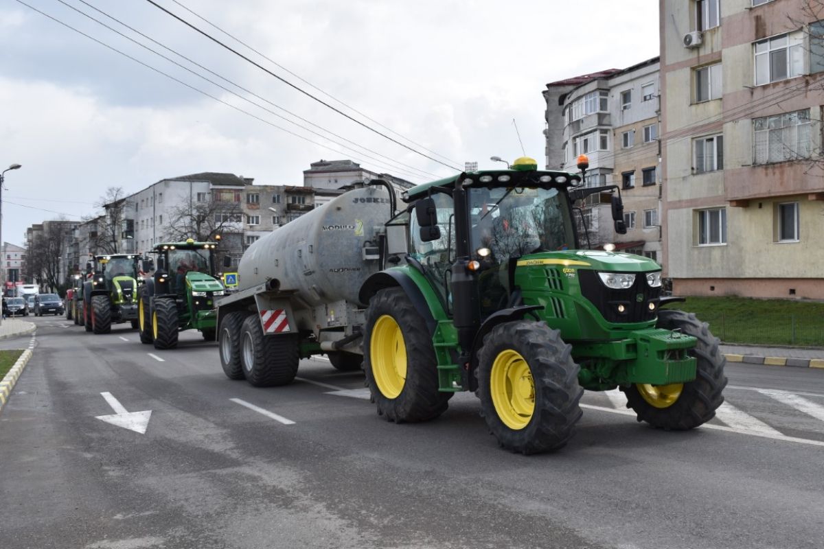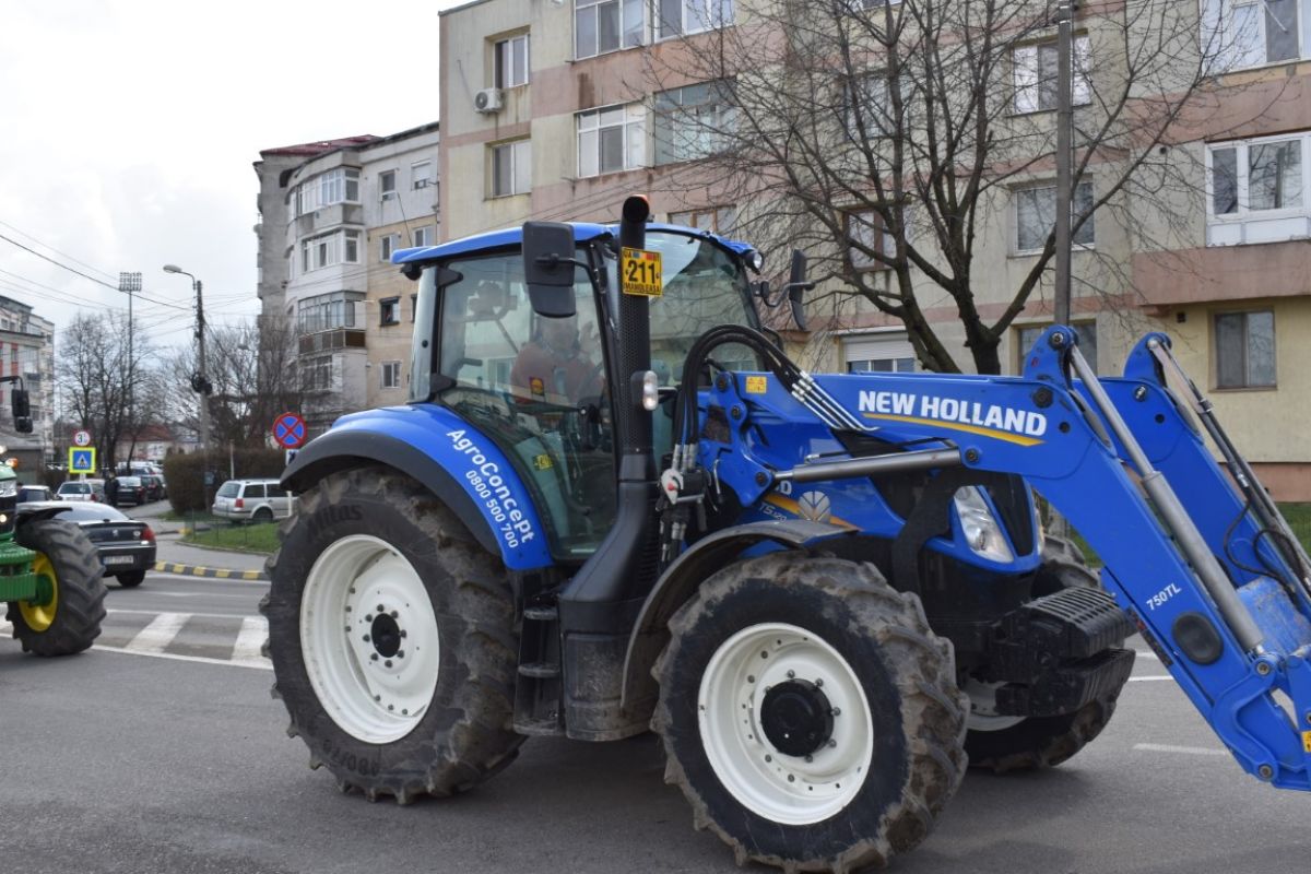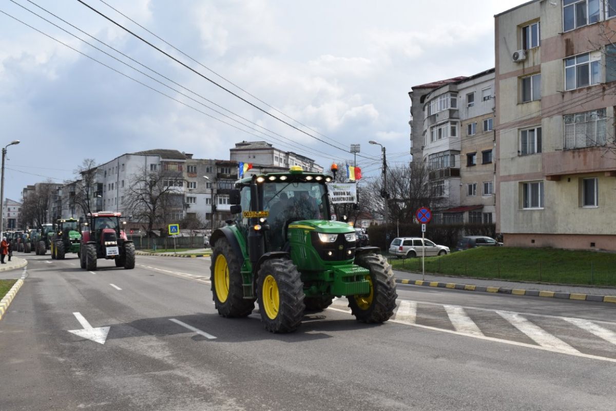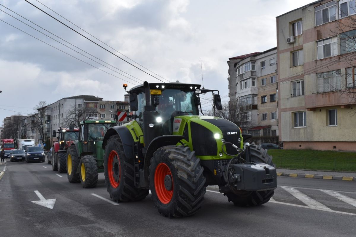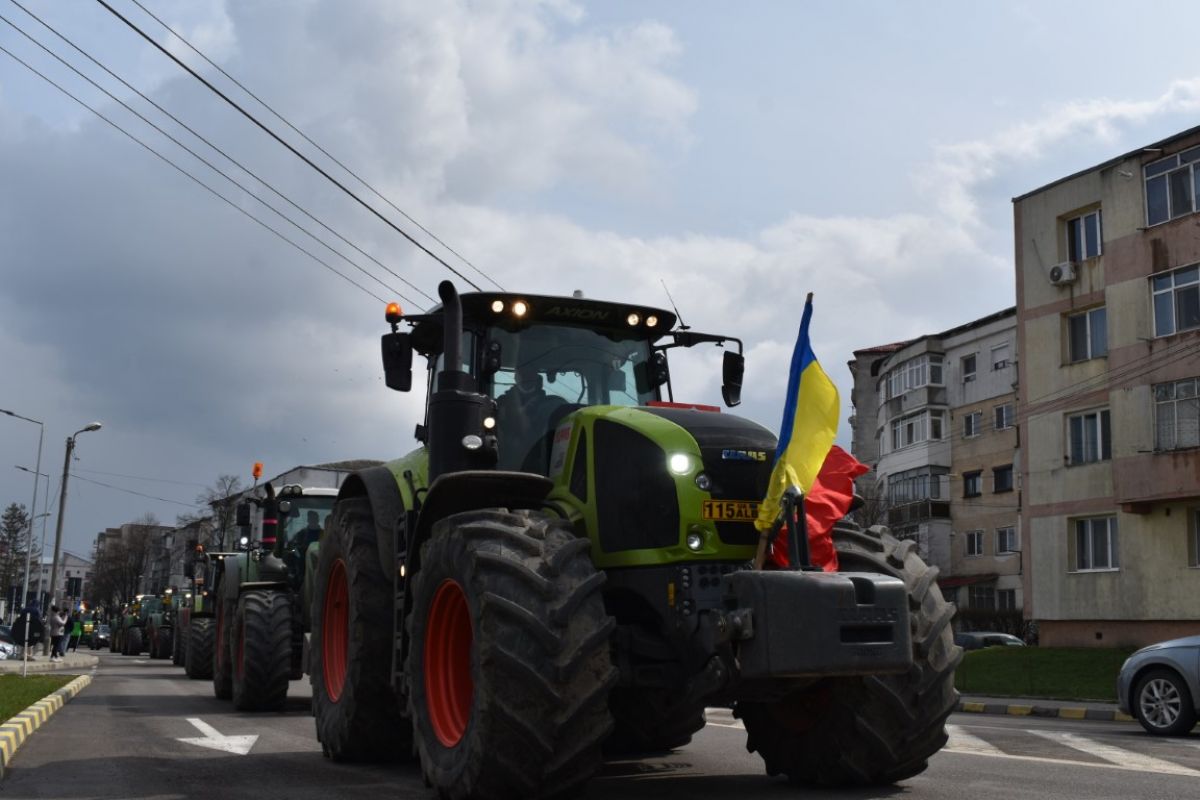 De pe trotuare, imaginea oferită a fost una de paradă. Tractoare cu roți înalte cât statura medie a unui om „împodobite” cu Drapelul Național și tot felul de pancarte cu lozinci anti-guvernamentale și mesaje de susținere a agriculturii au mărșăluit prin oraș, urcând pe Împărat Traian și coborând Calea Națională spre centrul orașului.