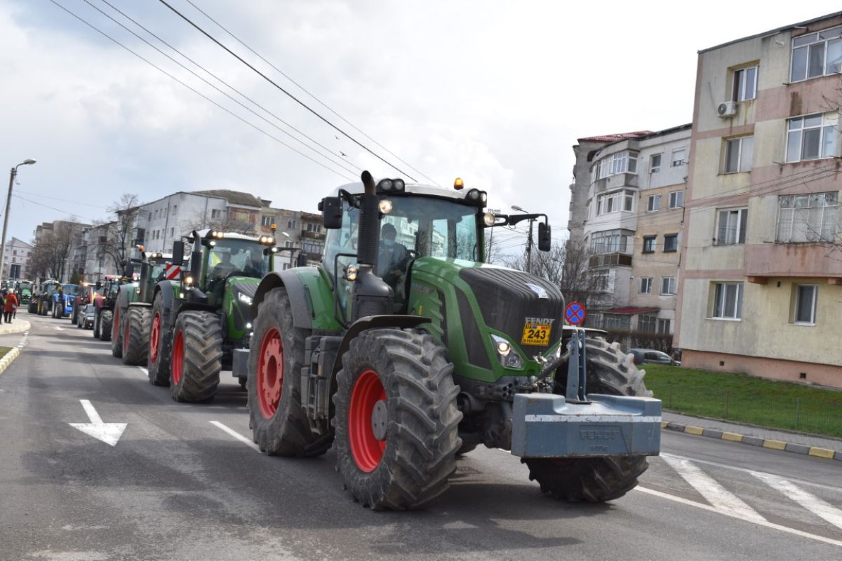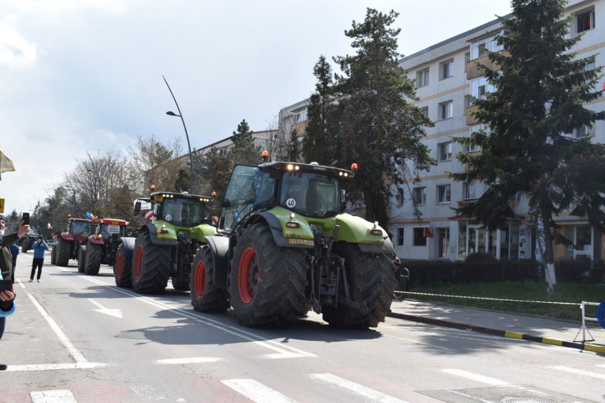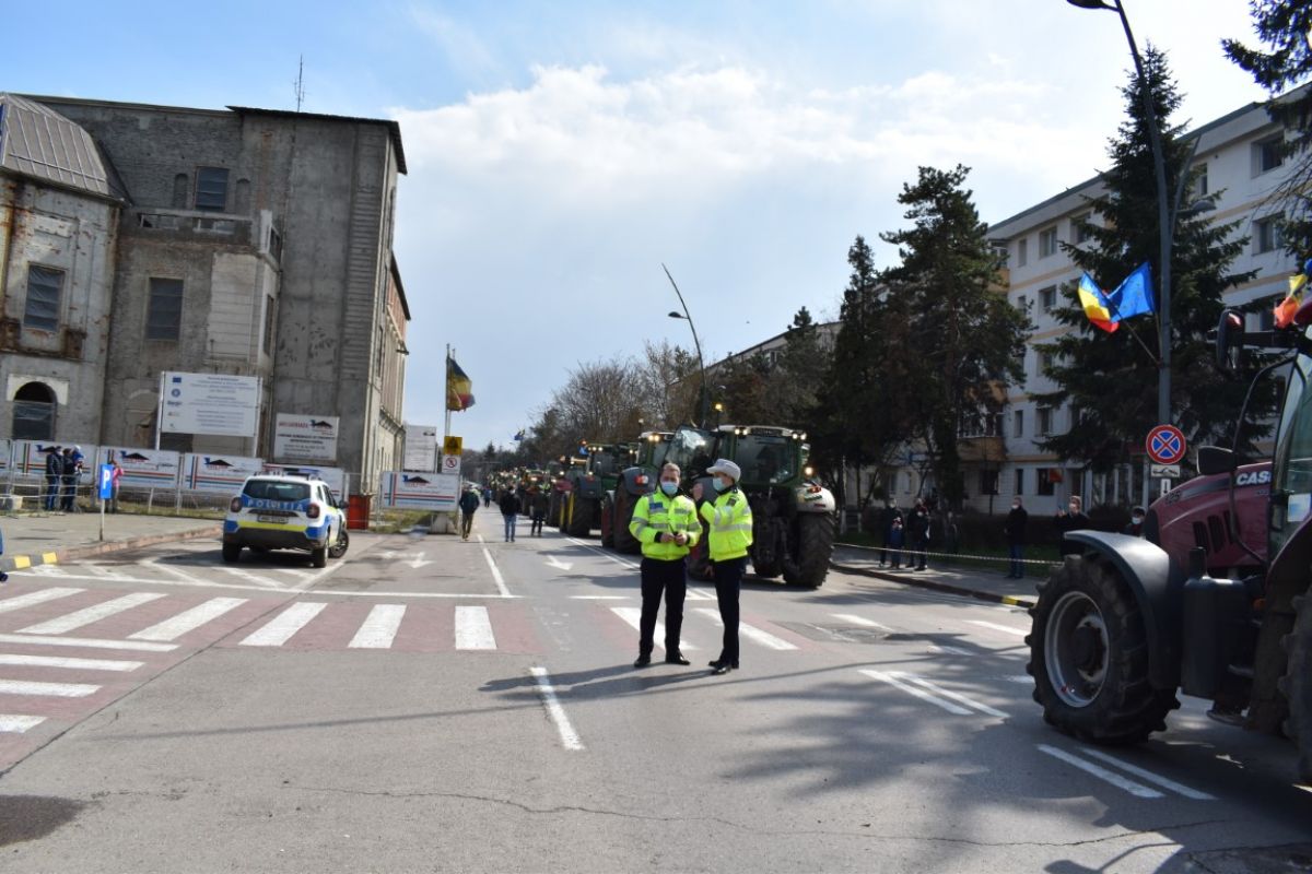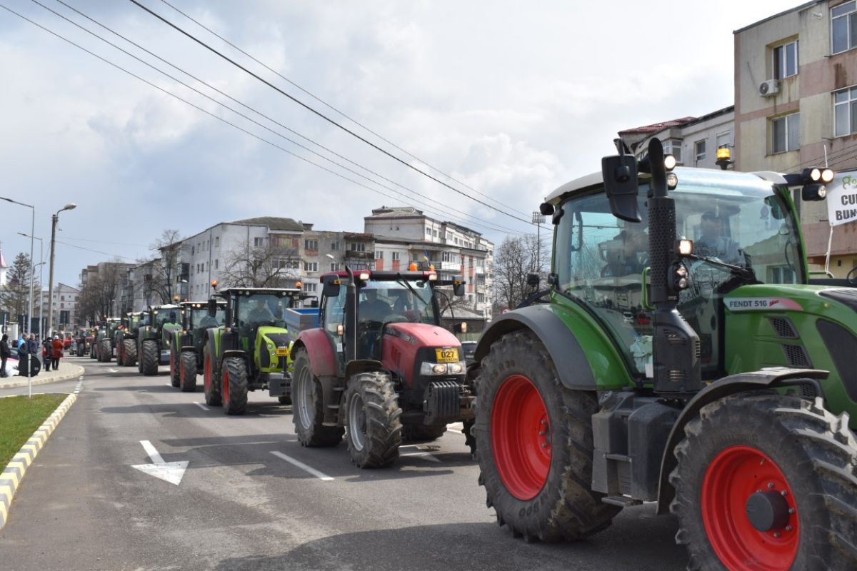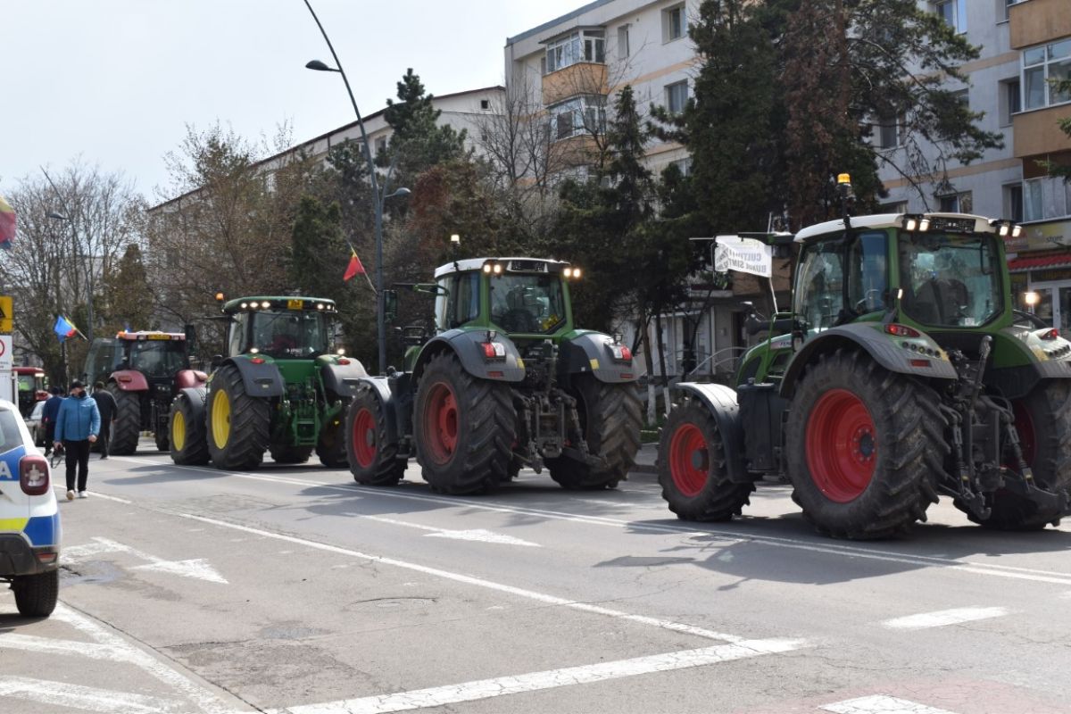 De pe trotuare, imaginea oferită a fost una de paradă. Tractoare cu roți înalte cât statura medie a unui om „împodobite” cu Drapelul Național și tot felul de pancarte cu lozinci anti-guvernamentale și mesaje de susținere a agriculturii au mărșăluit prin oraș, urcând pe Împărat Traian și coborând Calea Națională spre centrul orașului.